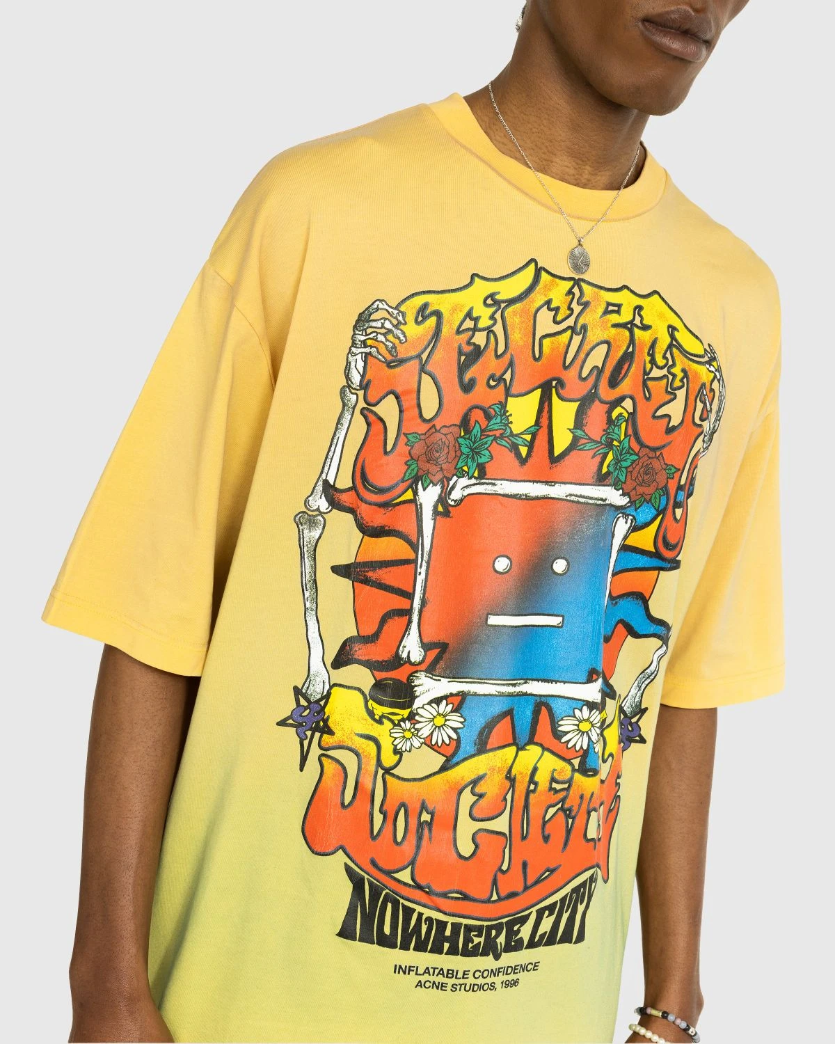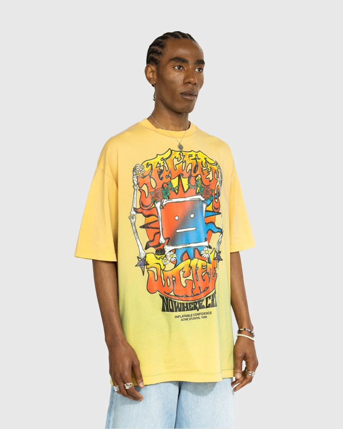 Made from organically grown cotton with a multicolored spray finish, this Acne Studios graphic tee is brought to life with a cracked screenprint implemented on the front. The vibrant style is poised to inject color into your year-round wardrobe, as it is cut in a loose, unisex fit designed for everyone.
