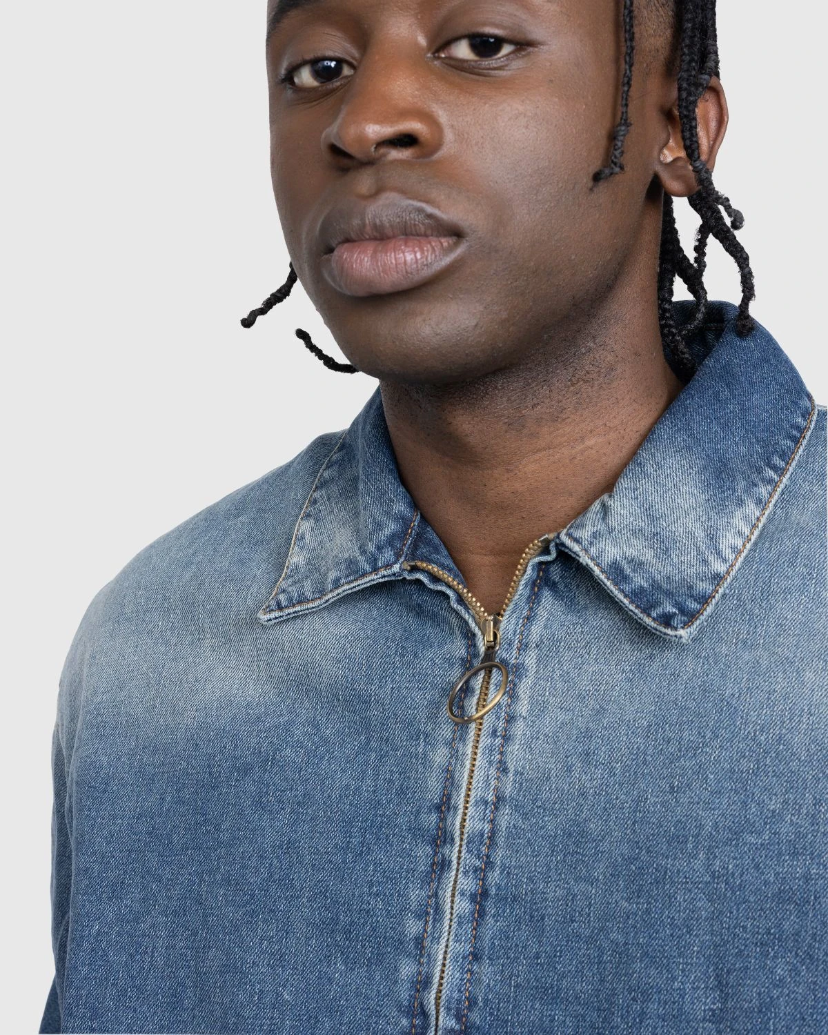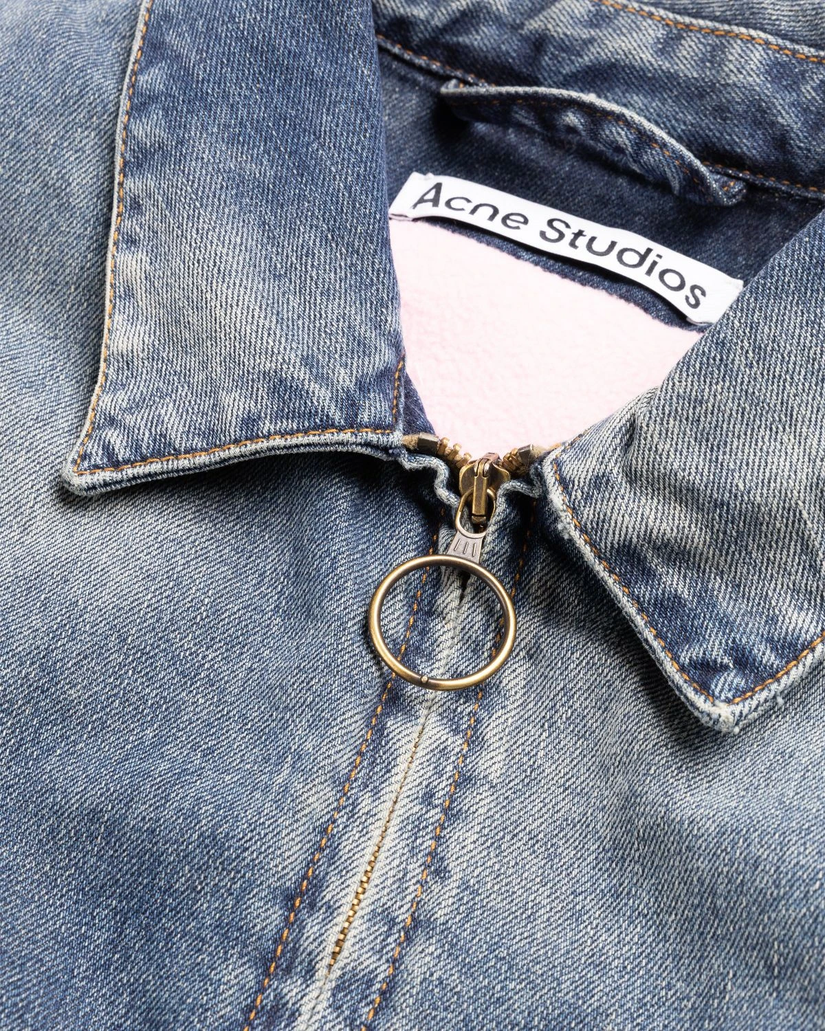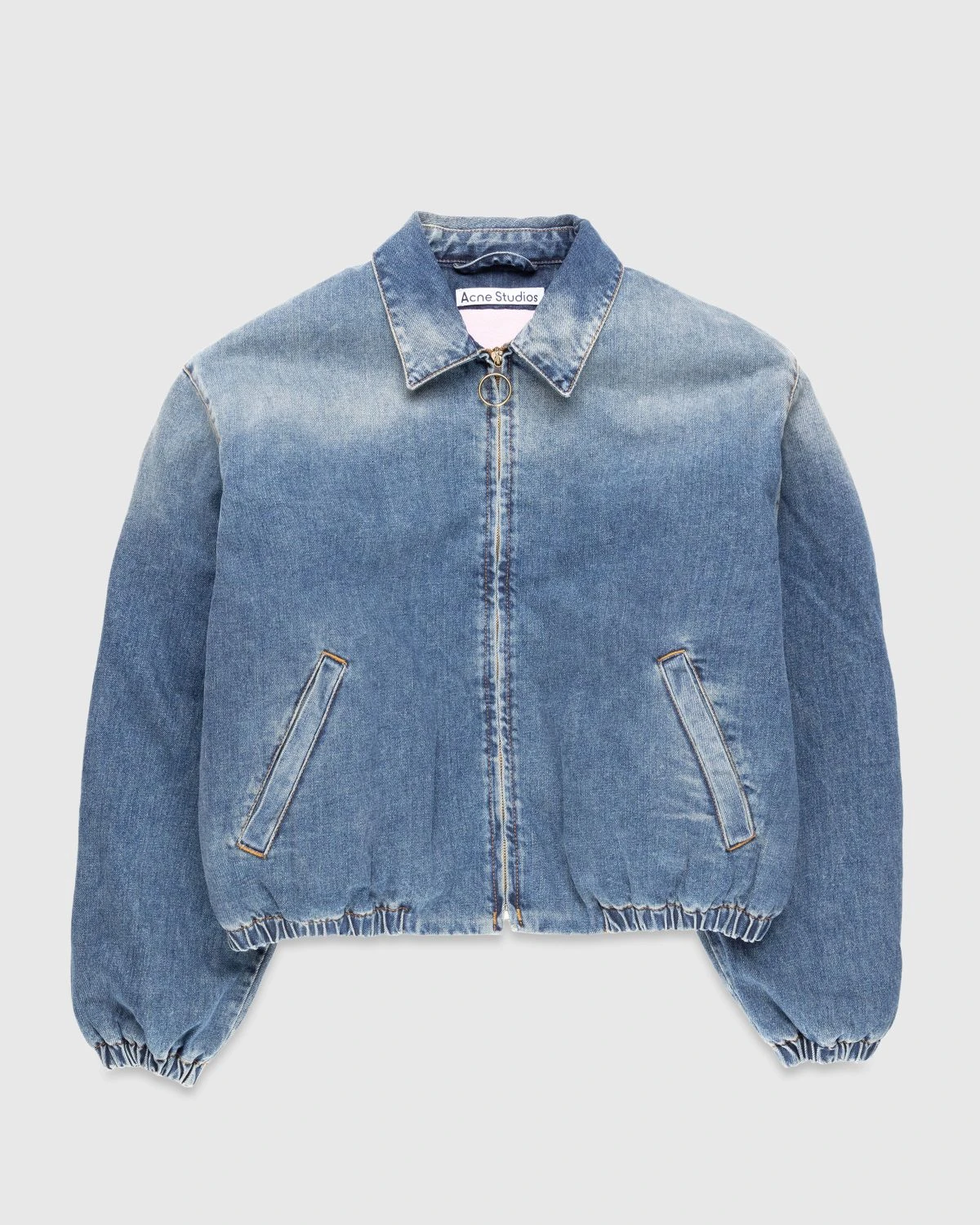 The denim padded jacket is one of many standout pieces from Acne Studiosβ latest collection. Crafted from a blend of organic and recycled cotton with a pigmented finish, the jacket is detailed with an elasticated hem, side seam pockets, front zip closure, and comes bearing the brandβs logo at the rear.