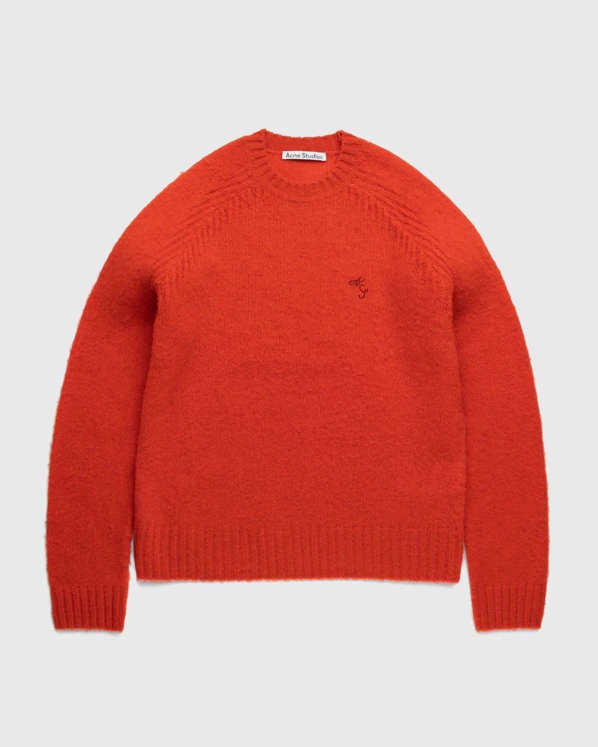 A staple Acne style, this comfy crewneck sweater is intricately labeled with the brandβs initials by way of embroidery at the chest. The top is crafted from a soft wool with a brushed appearance, detailed with traditional sweater design elements such as a rib knit crew neck, cuffs, and hem. The bright red colorway of the garment is perfect for adding a splash of color to your outfits no matter the season.