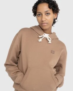 Shell is 100% cotton. Midweight fleece. Unisex. Pullover design. Drawstring hood. Pouch pocket with ribbed binding. Ribbed cuffs and hem. Face logo patch at the left chest.