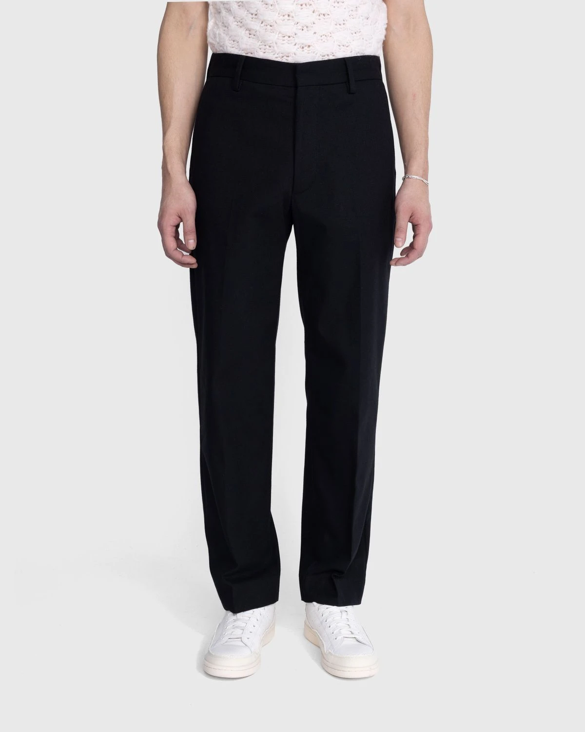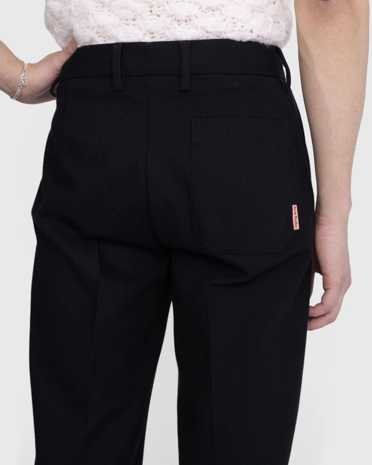 Capable of being dressed up or down with ease, these Acne Studios trousers are extremely versatile, arriving in a stealthy black colorway with a small pink logo flag at the back pocket. The pair is made from a soft cotton-polyester blend and cut in a regular fit with a mid rise. Design details include concealed closure, belt loops, and slanted hand pockets as well as a back patch pocket. This is one pair poised to be in rotation for years to come.
