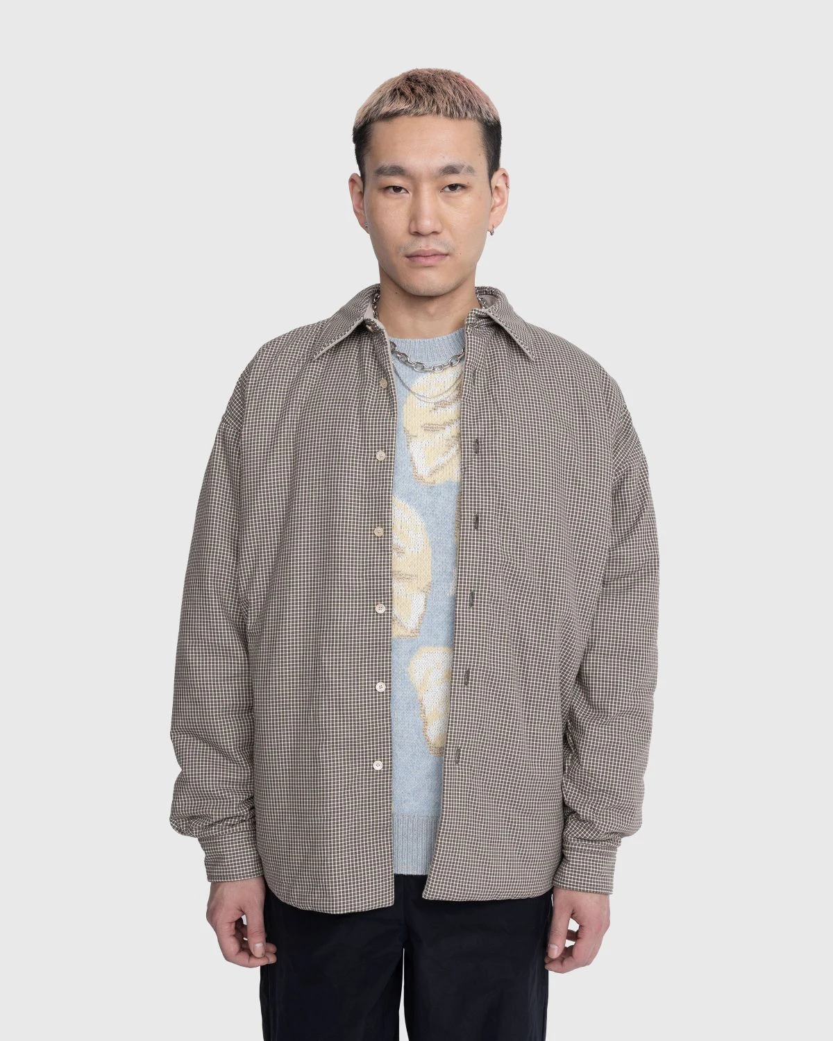 Featuring a tattersall pattern on one side and comfy fleece on the other, this reversible Acne Studios style brings you two distinctive looks in one garment. The piece is outfitted with button closure and button cuffs, while featuring side seam pockets and a chest pocket. It is finished with a leather logo patch on the back of one side. You can wear the garment as a shirt or a jacket, on its own or layered from season to season.