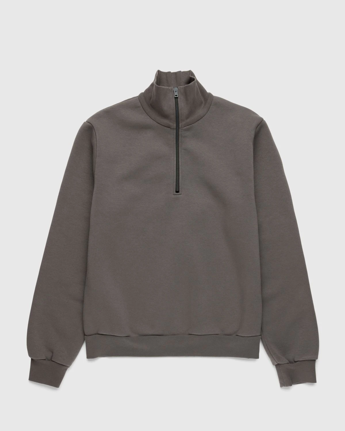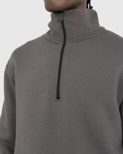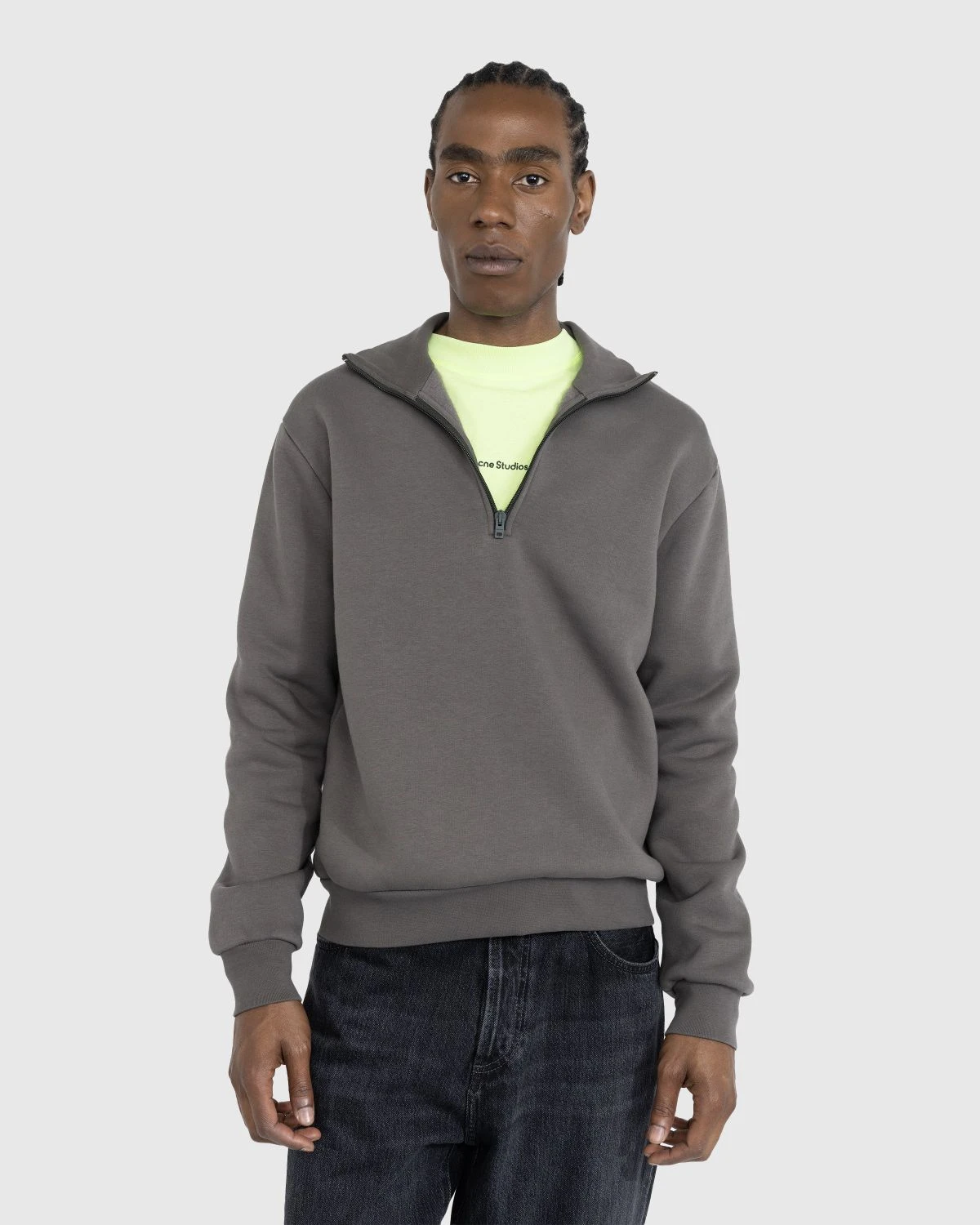 The Zippered Sweater is a unisex Acne Studios style made from midweight brushed fleece cotton. It features a zippered turtleneck and ribbed trims at the cuffs and hem, while being minimally branded with the Acne Studios pink label at the side seam.
