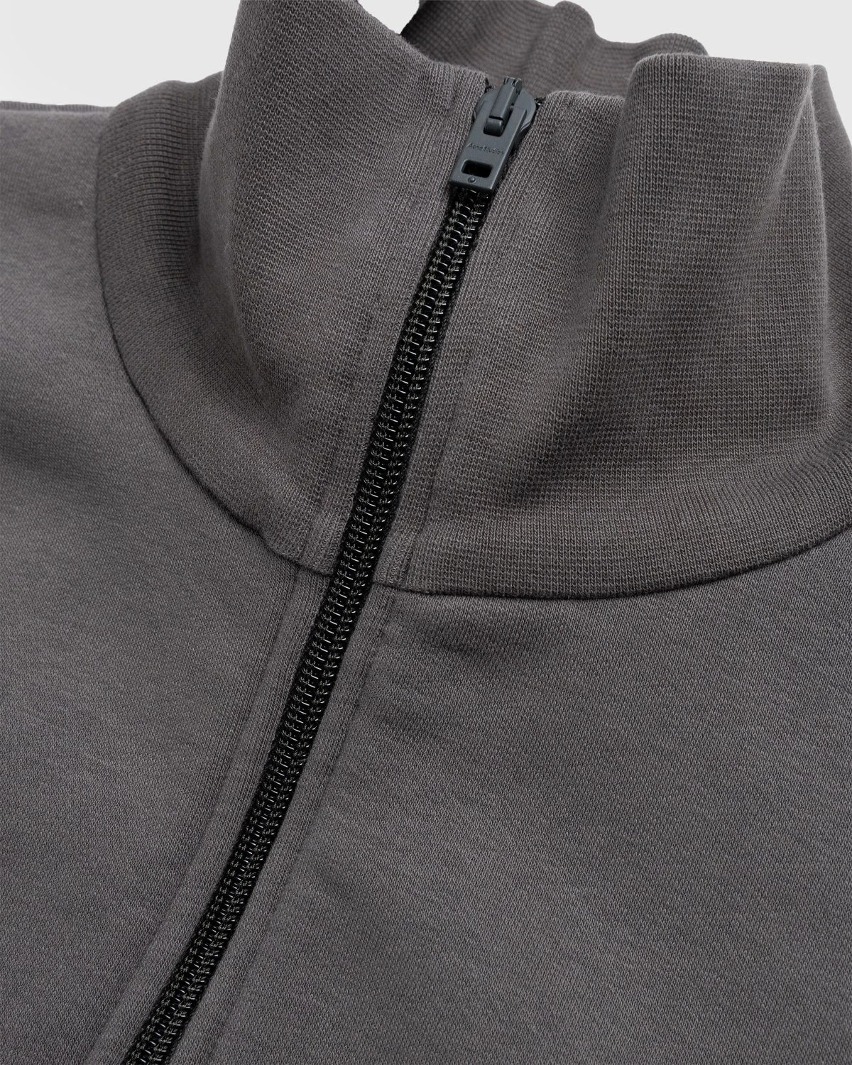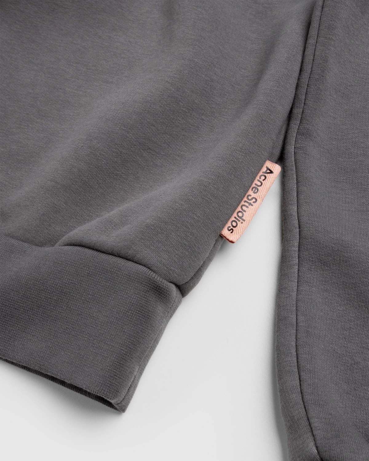 Shell is 66% organic cotton and 34% recycled polyester. Midweight brushed fleece cotton. Zippered turtleneck. Ribbed cuffs and hem. Acne Studios pink label at the side seam. Unisex.