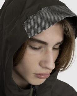 100% recycled nylon plain weave. 2.5-layer construction. Full zip closure. High collar. Hook and loop adjustable cuffs. Bungee adjustable hem. Seam-sealing taping. Underarm ventilation zips. Side hand pockets. Zip pocket at the right chest. adidas Terrex x and wander reflective print.