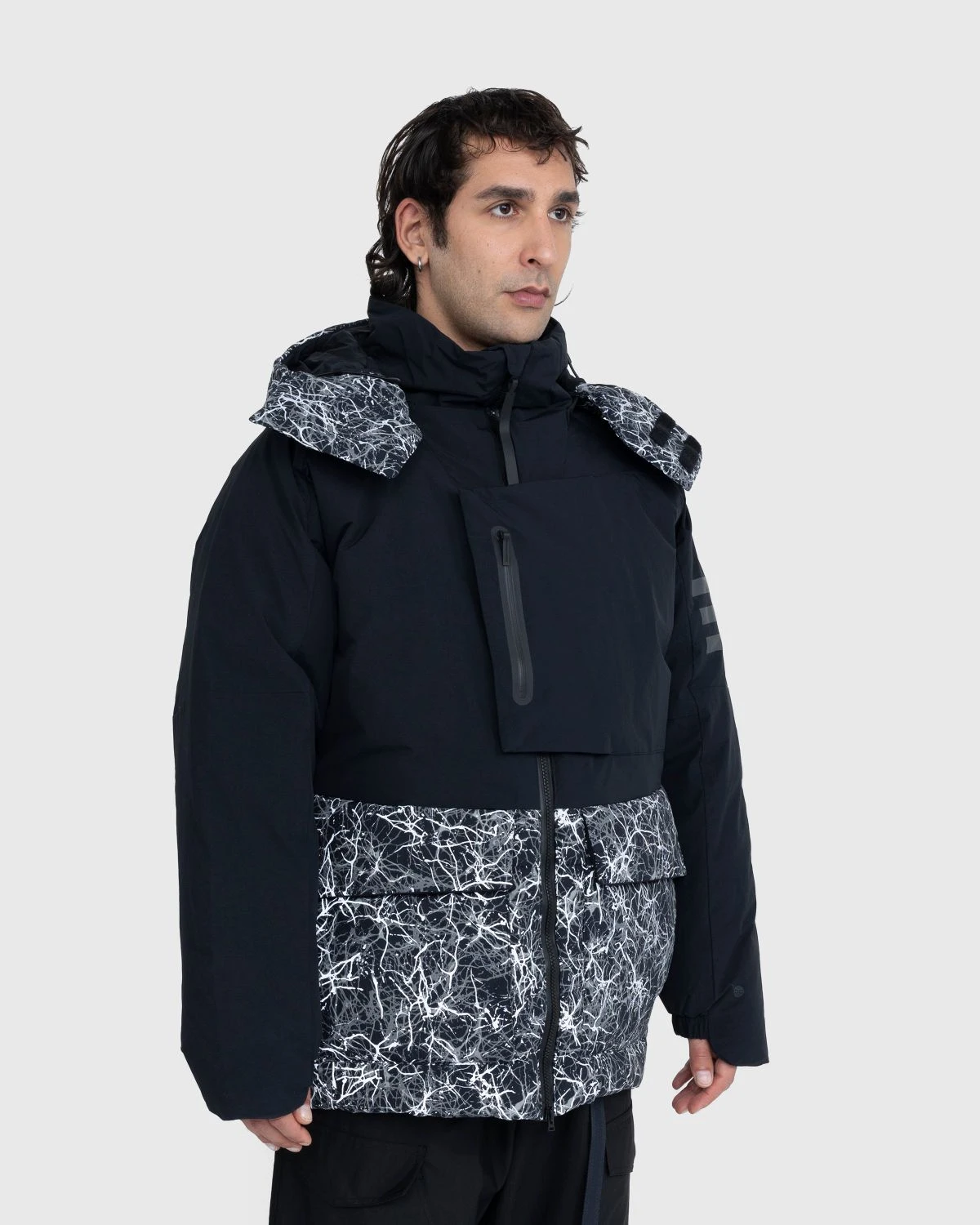 100% recycled nylon ottoman shell. 80% duck down and 20% feathers filling. Made with at least 60% recycled content. Two-way front zip closure. Adjustable and detachable hood. Underarm zips. Elastic cuffs. Drawcord hem with stopper. Dual-entry front zip pockets. Zip pocket in the chest flap. Reflective details.
