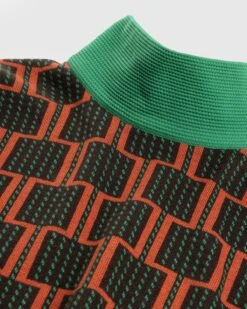 The multicolored Knit Turtleneck is featured in the latest collection from adidas and Wales Bonner. It draws immediate attention with an intricate all-over pattern and contrasting turtle neck. The garment is cut for a relaxed fit and embellished with embroidered adidas and Wales Bonner branding on the sleeves.