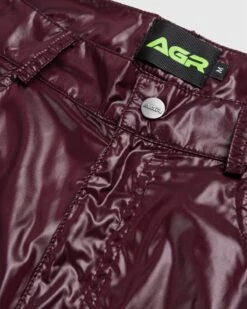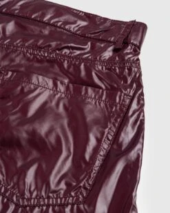 The glossy nylon material of these pants translates to a leather-like look for a standout style. Arriving in a purple colorway, the pant features a traditional five-pocket construction, with button fastening, a zip fly, and belt loops lining the waist. The fit is cut true to size with a wide leg.