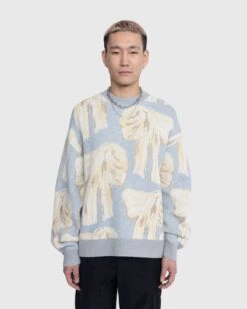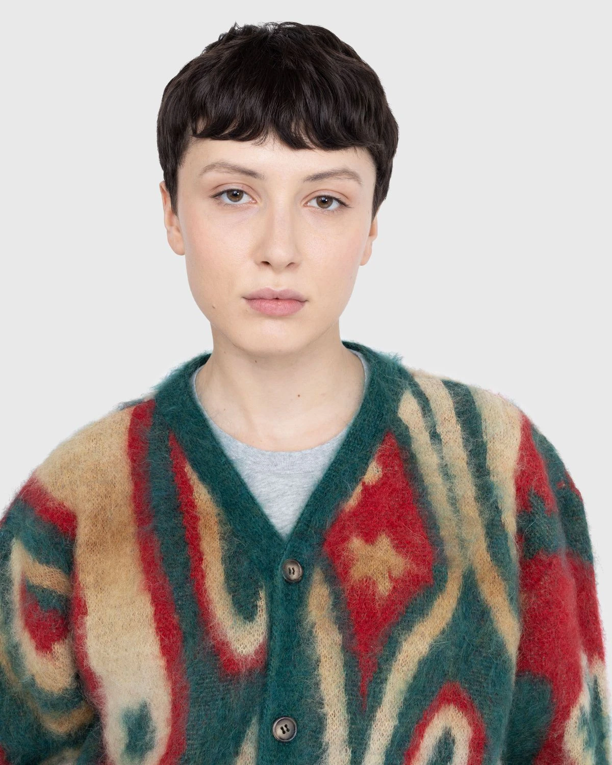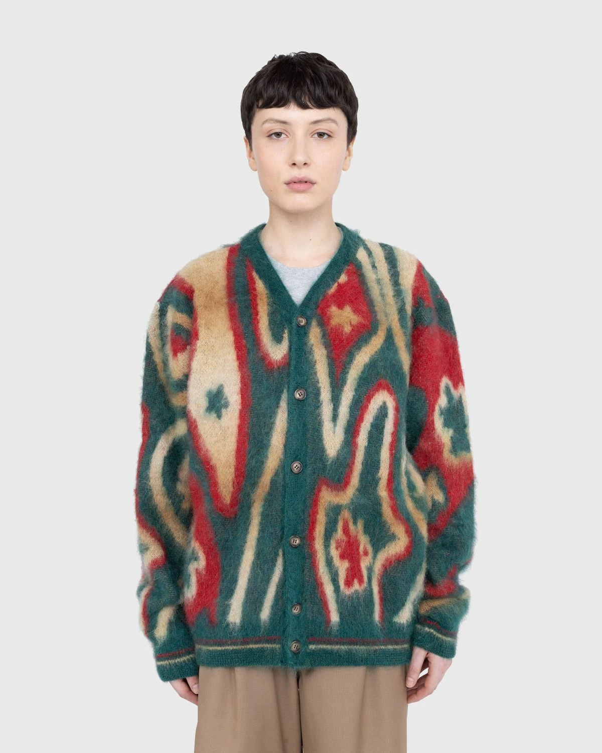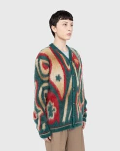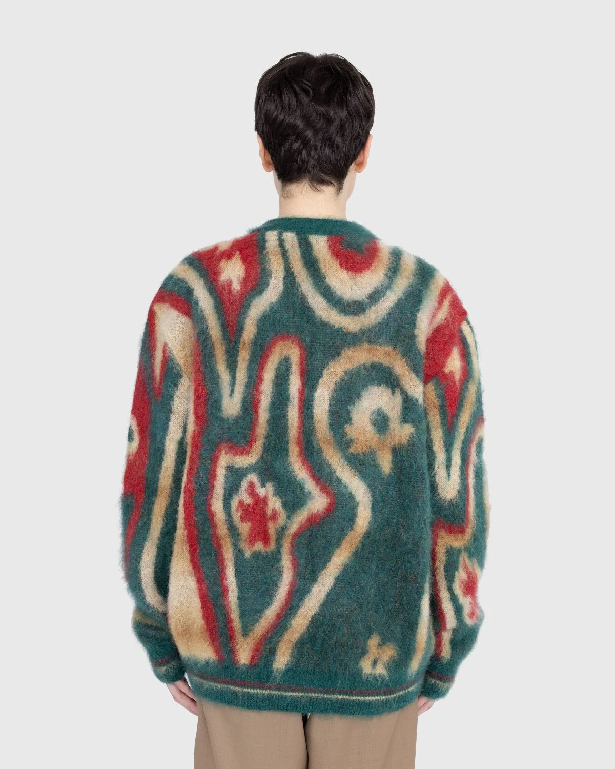 The Ongoye Cardigan is one of the standout pieces from Ahluwaliaβs latest collection that blends the designerβs heritage with their London roots. Crafted from 100% mohair, the cardigan is defined by its striking abstract patterns and brushed texture.