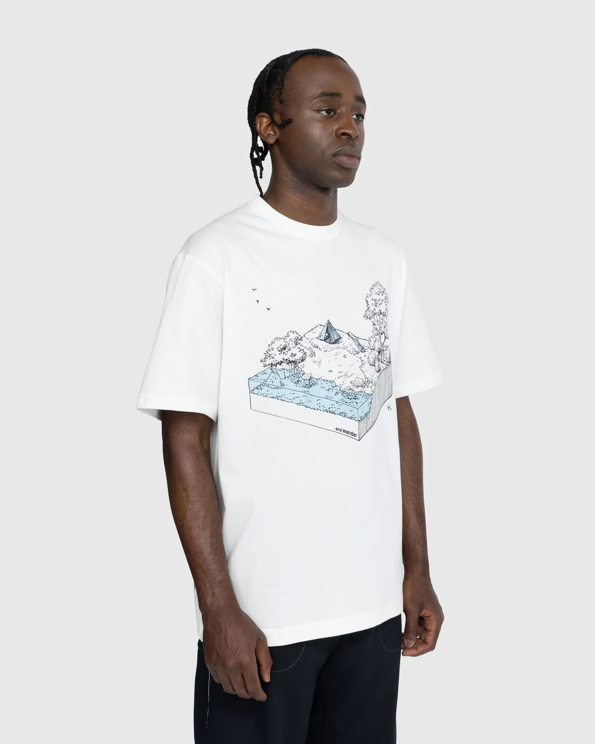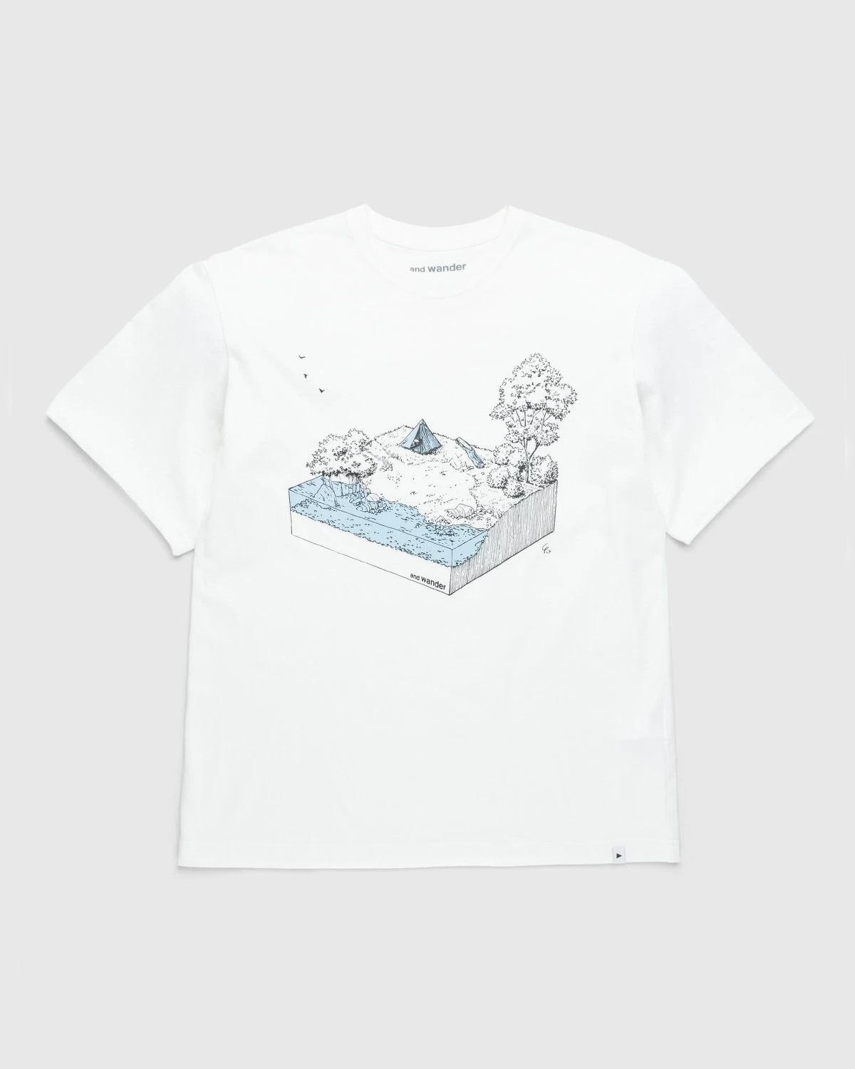 The In The Mountain Tee showcases original artwork by illustrator Takeda Yoshifumi. Cut in a classic boxy fit, the shirt is made from combed cotton yarn and recycled polyester yarn, as the back is executed in polyester for its quick-drying properties.