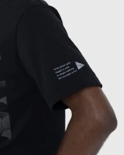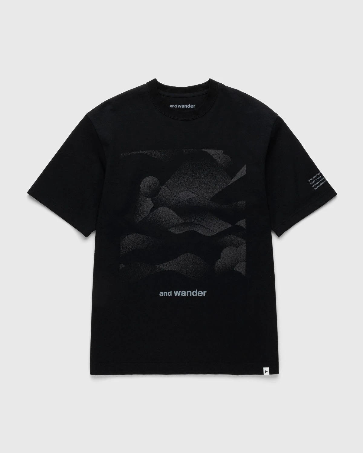 This and wander tee is adorned with a seasonal graphic print on the front depicting an abstract mountain range. It is cut in a classic boxy fit, made from a soft cotton-polyester blend. In addition to the main graphic, the t-shirt features and wander logos printed on the front and sleeve, with a logo label applied to the hem.