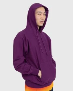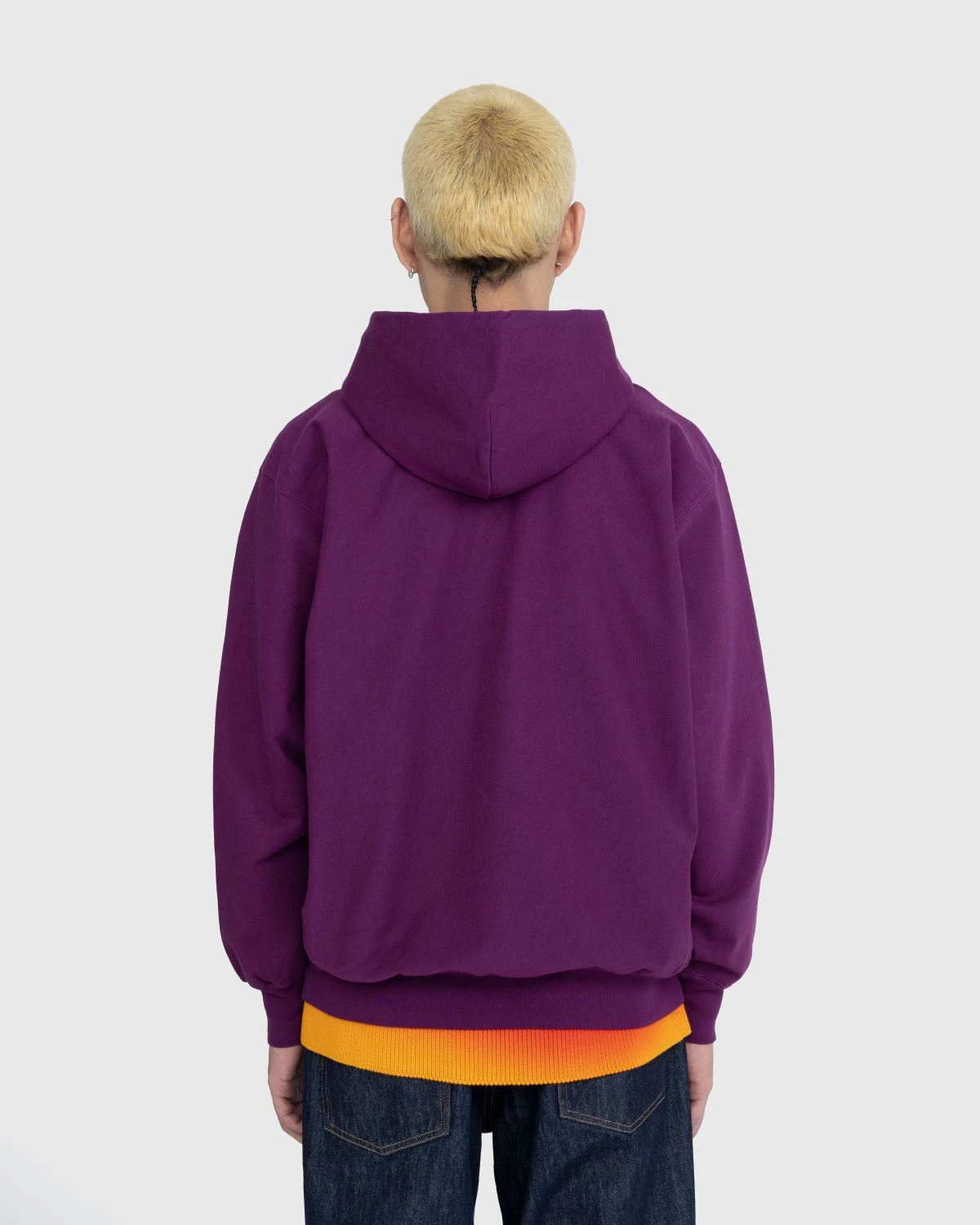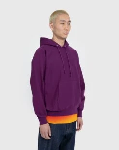 The Auralee Pullover Hoodie is knit using high-quality super-long cotton and bulky shrunken yarn, garment-dyed to give it a distinctive finish. It is cut in a regular, boxy fit, featuring traditional design elements including an adjustable drawstring hood, front pouch pocket, and ribbed trims. Available in a selection of monochromatic colorways, the hoodie is designed for long-lasting, year-round wear.