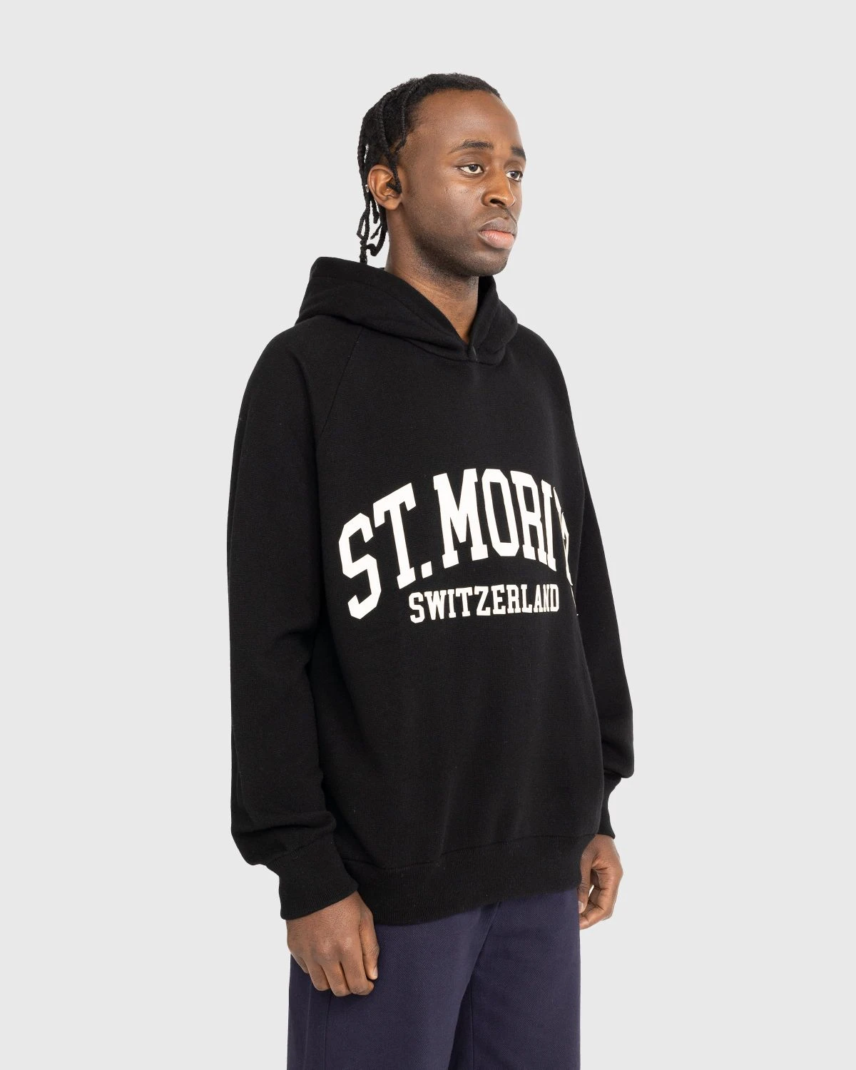 The St. Moritz Hoodie pays tribute to one of the most iconic Swiss resorts, with thematic logo lettering incorporated front and center. Produced in cashmere, the cozy pullover is further embellished with a small logo patch on the back alongside traditional hoodie design elements such as a fixed hood and ribbed trims. Additional features include a single snap button at the hood and side hand pockets.