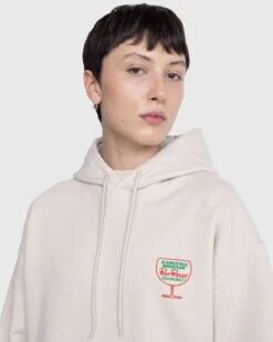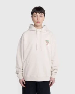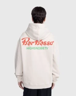 This graphic hoodie arrives with a small chest print and large back print that highlight Bar Basso as part of our celebration of all things Italian for Milan Design Week. One of the oldest and most influential cocktail bars in Milan, Bar Basso has long been a renowned Milanese institution. It is well known for its signature cocktail Negroni Sbagliato, a drink invented by owner Maurizio Stocchetto, which comes served in a massive scenographic glass. Over the years, the historical establishment has become closely associated with the cityβs art and fashion scenes, further solidifying it as a true cultural fixture in Milan.