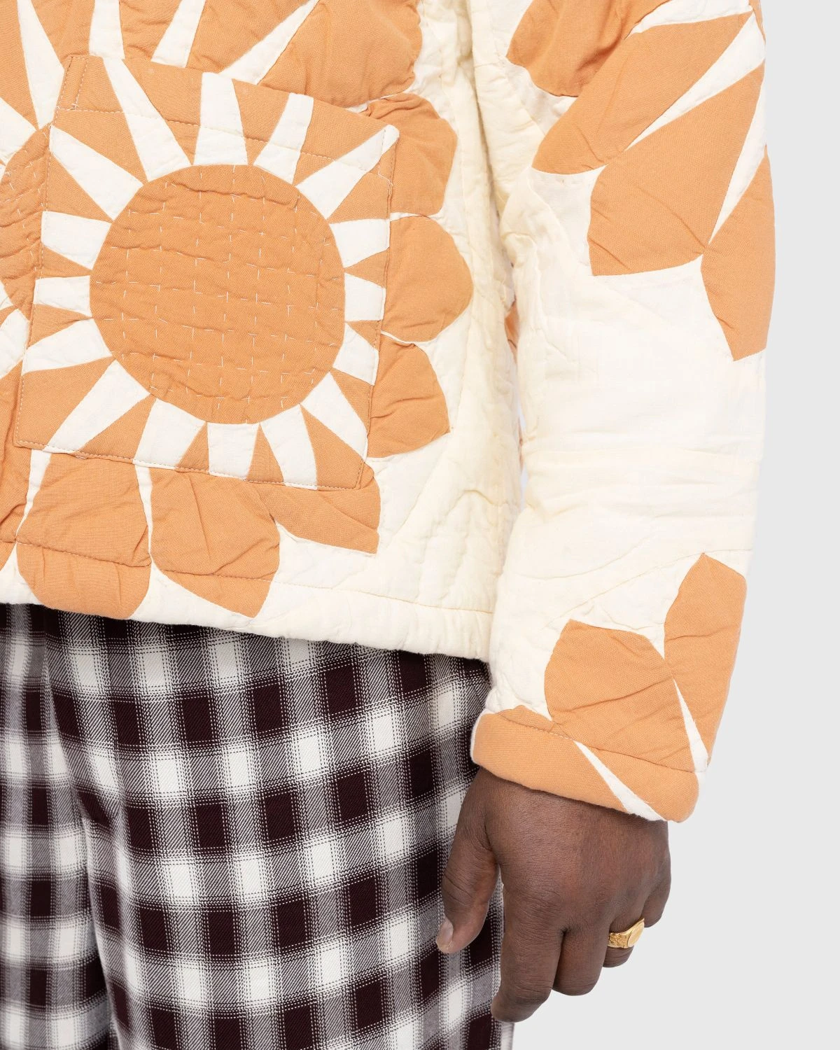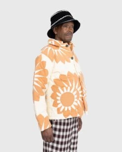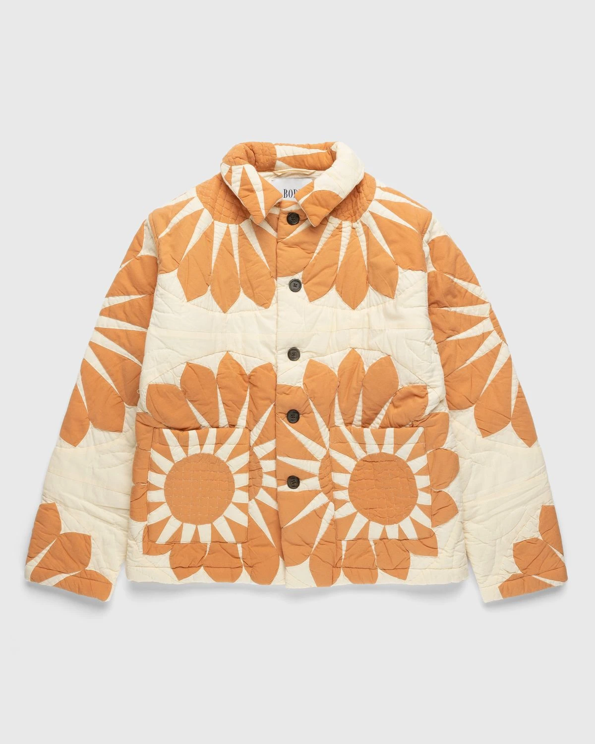 A vibrant take on the classic workwear jacket, the Grand Daisy is decorated with floral detailing throughout. The outerwear style is made from a quilted, plain-woven cotton, with polyester filling for enhanced comfort. Kantha stitching brings intricate detailing to the piece, which features a spread collar, button closure, and two patch pockets at the front. The garment is cut in a boxy fit for a classic workwear look.