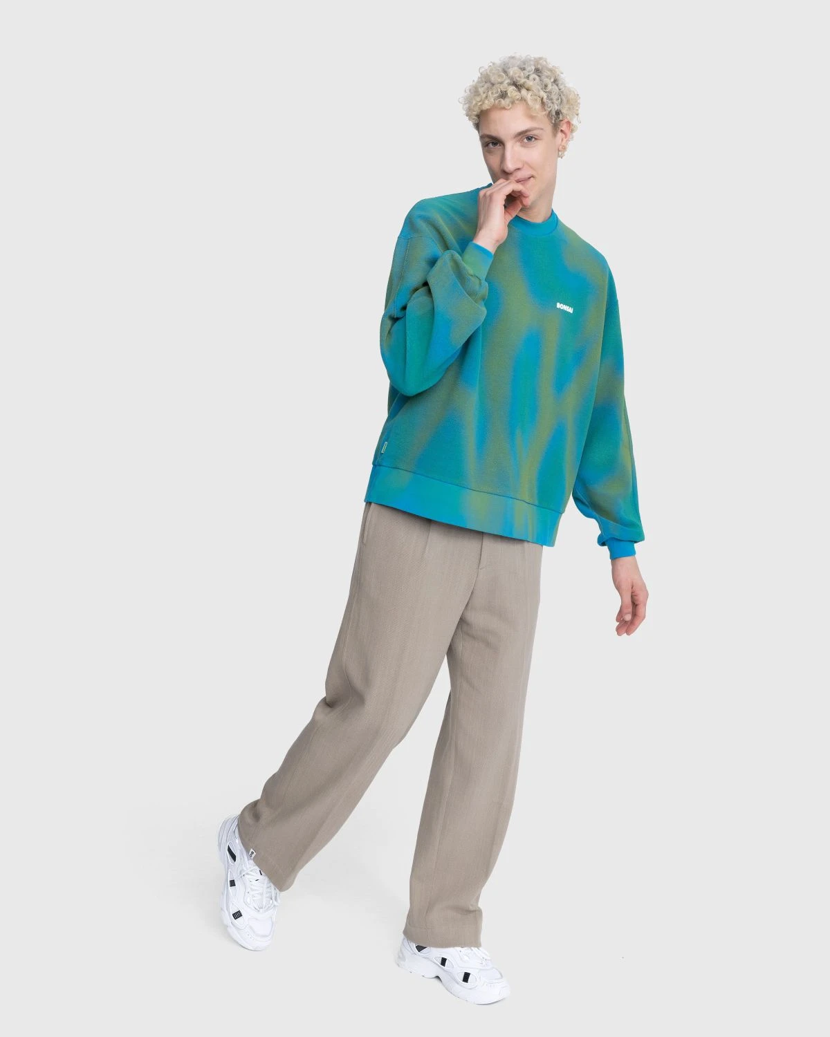 Bonsaiβs latest seasonal collection includes an assortment of spray dyed pieces that showcase a distinctive all-over pattern. Primed and ready to bring vibrant energy to your daily looks, garments like the Spray Dyed Crewneck Sweatshirt arrive in bold colorways with minimal branding in the form of a small printed logo implemented at the chest. The cotton top is cut for a slightly oversized, boxy fit to ensure a comfortable wear.