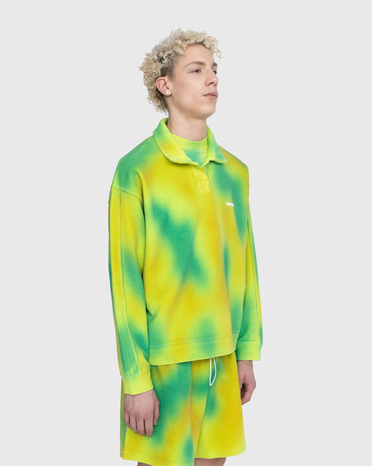 Bonsaiβs latest seasonal collection includes an assortment of spray dyed pieces that showcase a distinctive all-over pattern. Primed and ready to bring vibrant energy to your daily looks, garments like the Spray Dyed Longsleeve Polo arrive in bold colorways with minimal branding in the form of a small printed logo implemented at the chest. The cotton top is cut for a slightly oversized, boxy fit to ensure a comfortable wear.