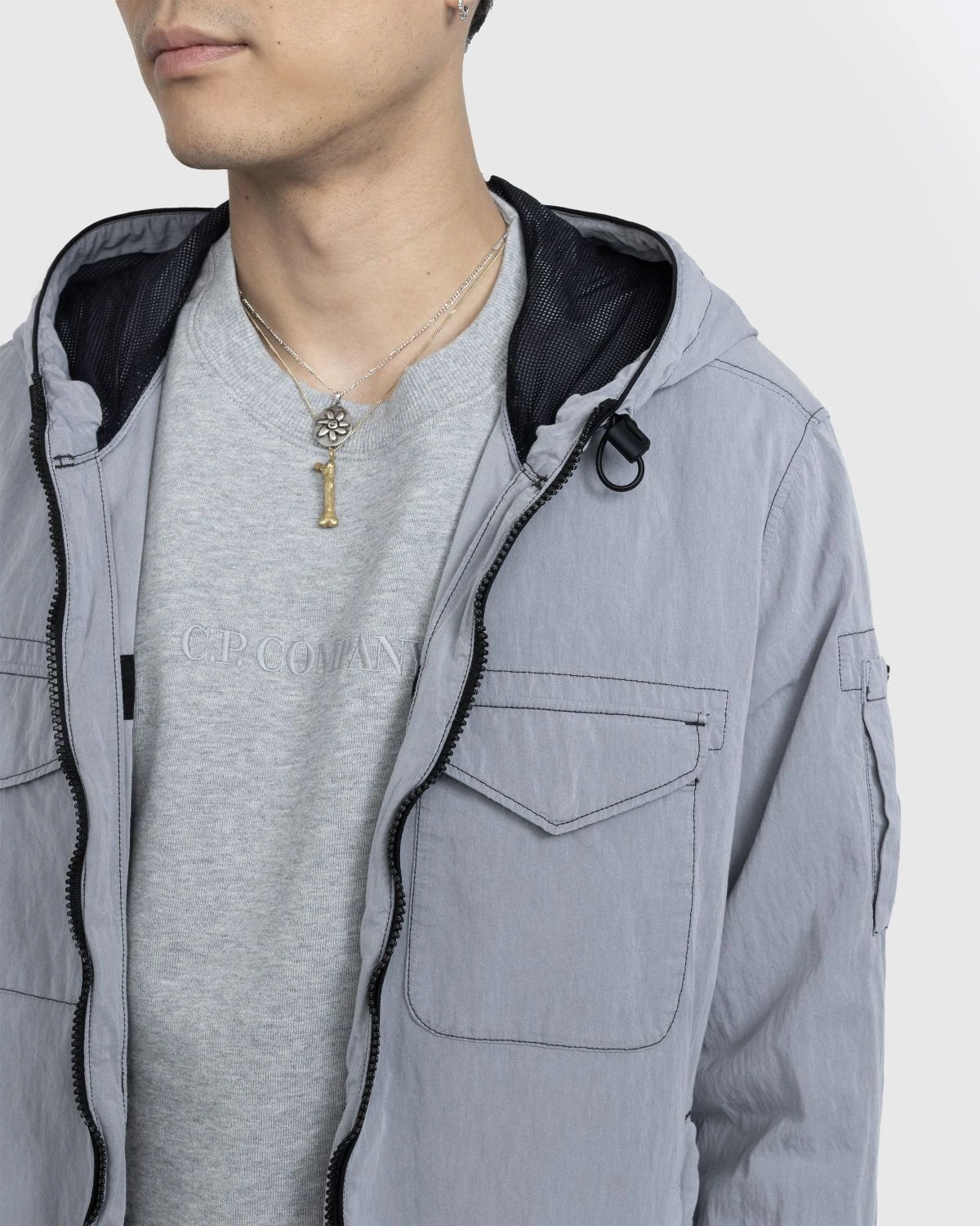 This C.P. Company jacket is produced in 50 Fili, a nylon-cotton blend derived from American field parkas, featuring a polyurethane coating indicative of hard-wearing outerwear. It features full zip closure, an adjustable hood and cuffs, and side hand pockets as well as two chest flap pockets. The brandβs signature lens detail is incorporated into the left sleeve pocket to round out the design.