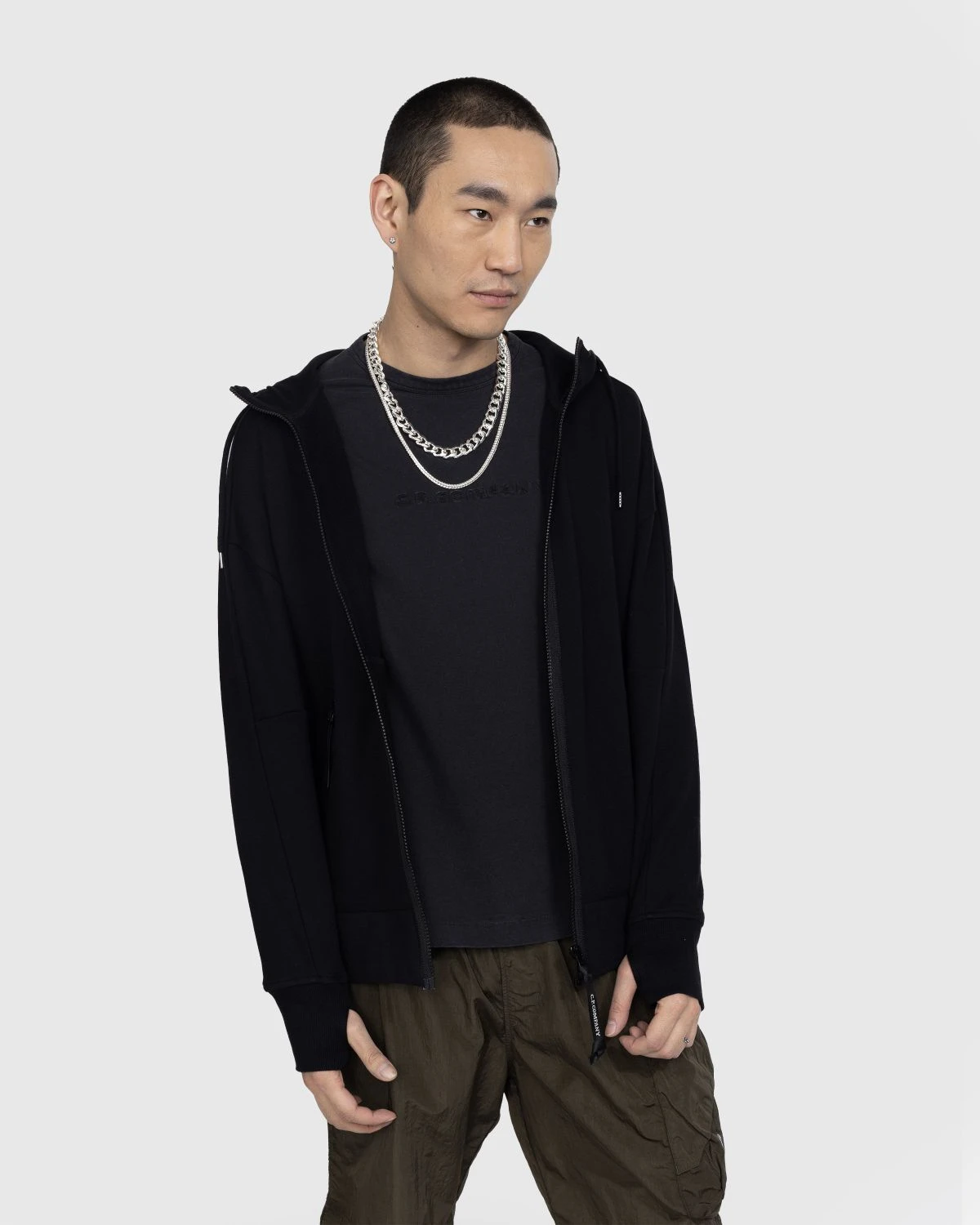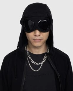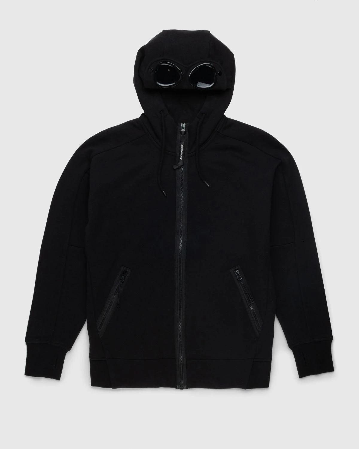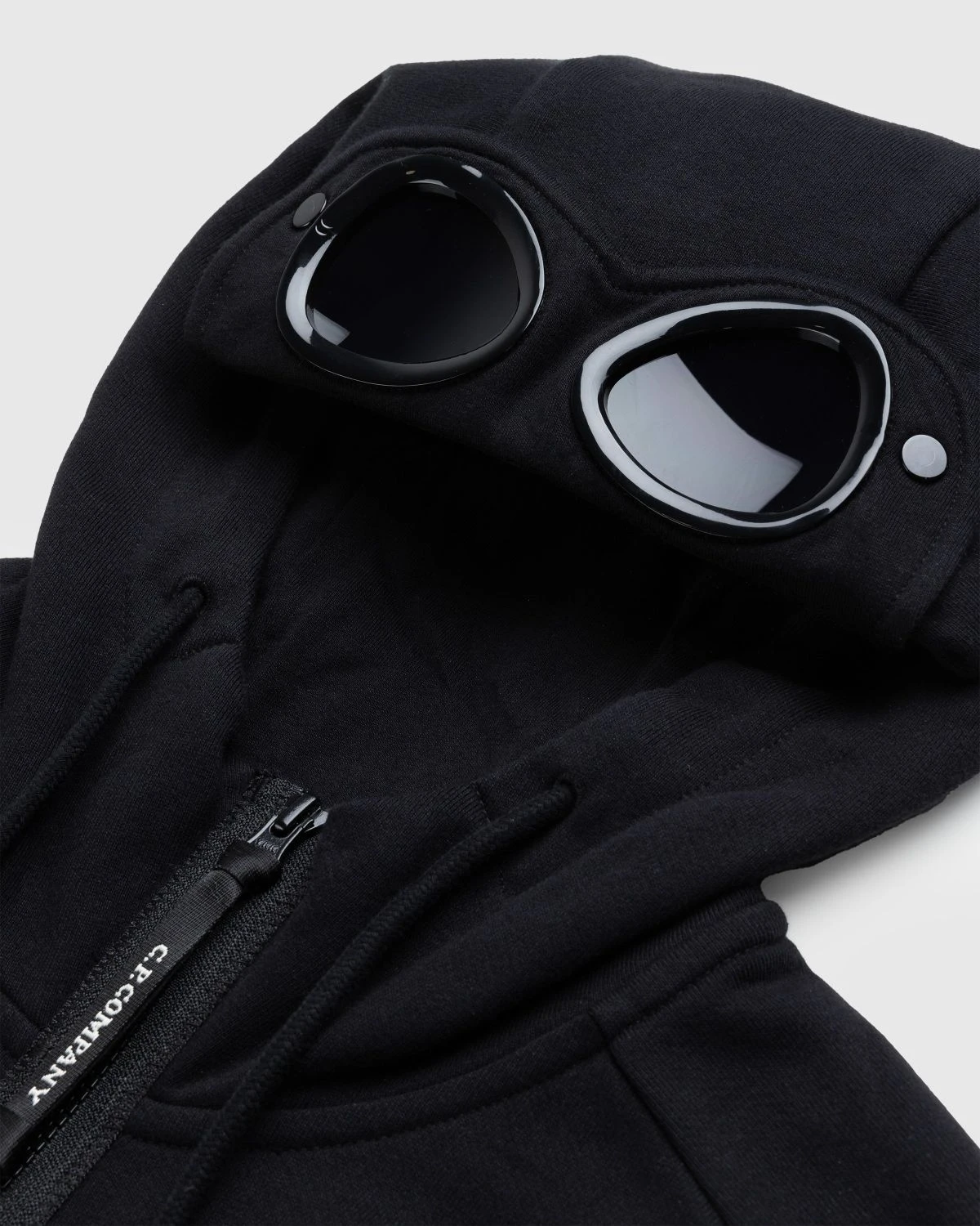 This C.P. Company hoodie is defined by the brandβs signature goggle detail applied to the hood. The garment is manufactured in C.P.βs diagonal raised fleece, a midweight loopback cotton with a substantial and hard-wearing feel. Details include an adjustable drawstring hood, ribbed trims, and slanted hand pockets.
