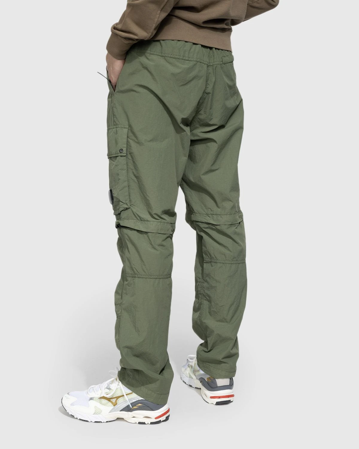 Two styles in one, these C.P. Company bottoms feature zips at the knee that allow you to go from pants to shorts in a flash. The pair is produced in flatt nylon, a water-resistant woven fabric emerized for a soft finish and garment-dyed to create a faintly washed effect. Details include reinforced belt loops, multiple pockets including zip hand pockets, two front leg pockets, and a back zip pocket, and the brandβs trademark lens incorporated onto the left leg.