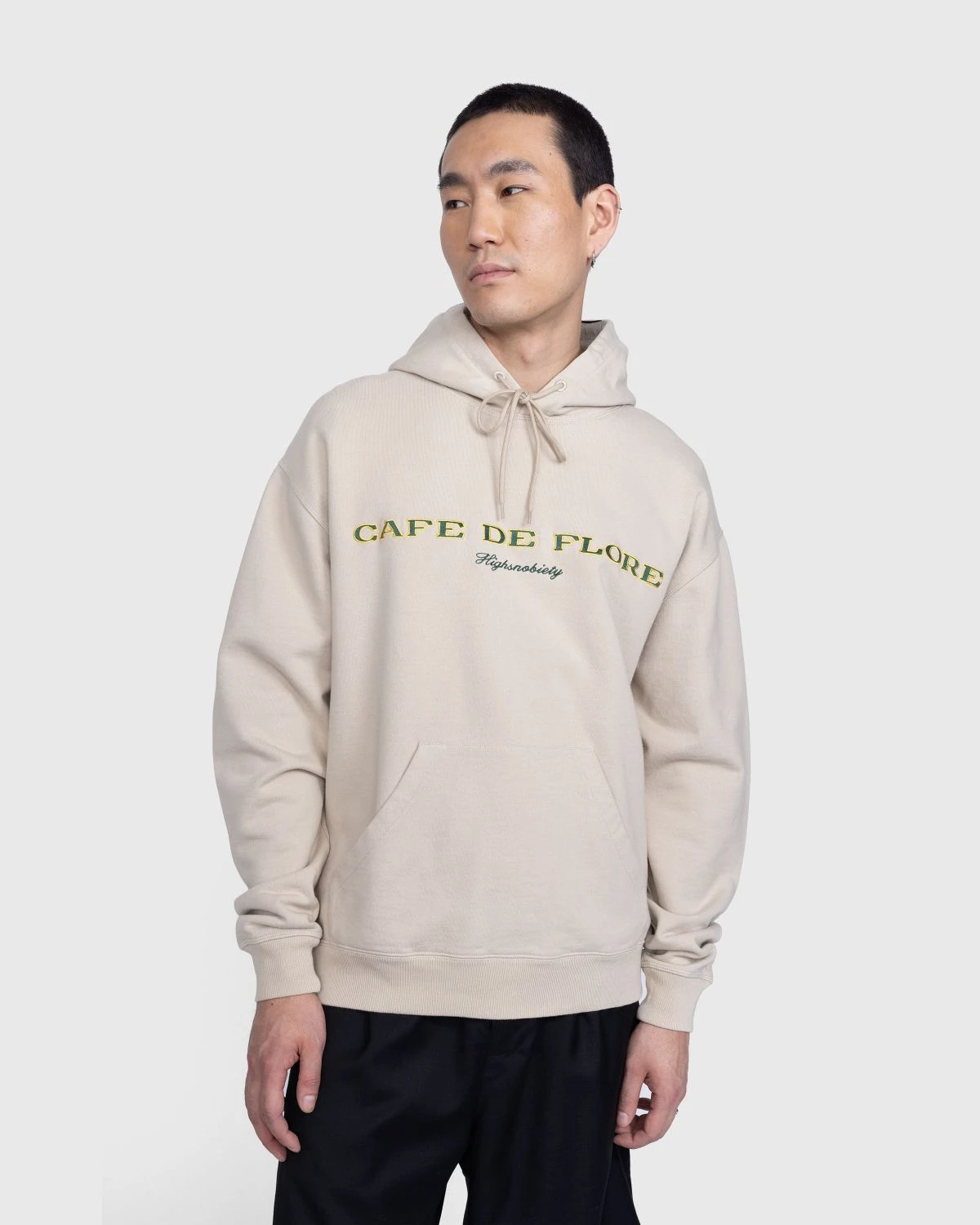 This graphic style is made in celebration of one of Paris’ oldest and most beloved coffee houses. The Café de Flore x Highsnobiety hoodie is decorated with embroidery inspired by the typographic branding on the exterior awning of the Cafe. A Parisian landmark, Café de Flore is known for its famous clientele and close ties to the fashion industry, as each Paris Fashion Week attendees flock to the establishment like clockwork. The hoodie style is one of many pieces specifically designed to commemorate the fifth edition of Not In Paris, a multi-media event hosted by Highsnobiety featuring a selection of our favorite brands, artists, musicians, and other creators leading the charge in pushing culture forward. Coinciding with men’s fashion month, Not In Paris 5 hones in on the defining aspects of Paris, its people, and institutions, with collaborative capsules and inline releases spanning cut and sew, graphic styles, accessories, and collectibles.