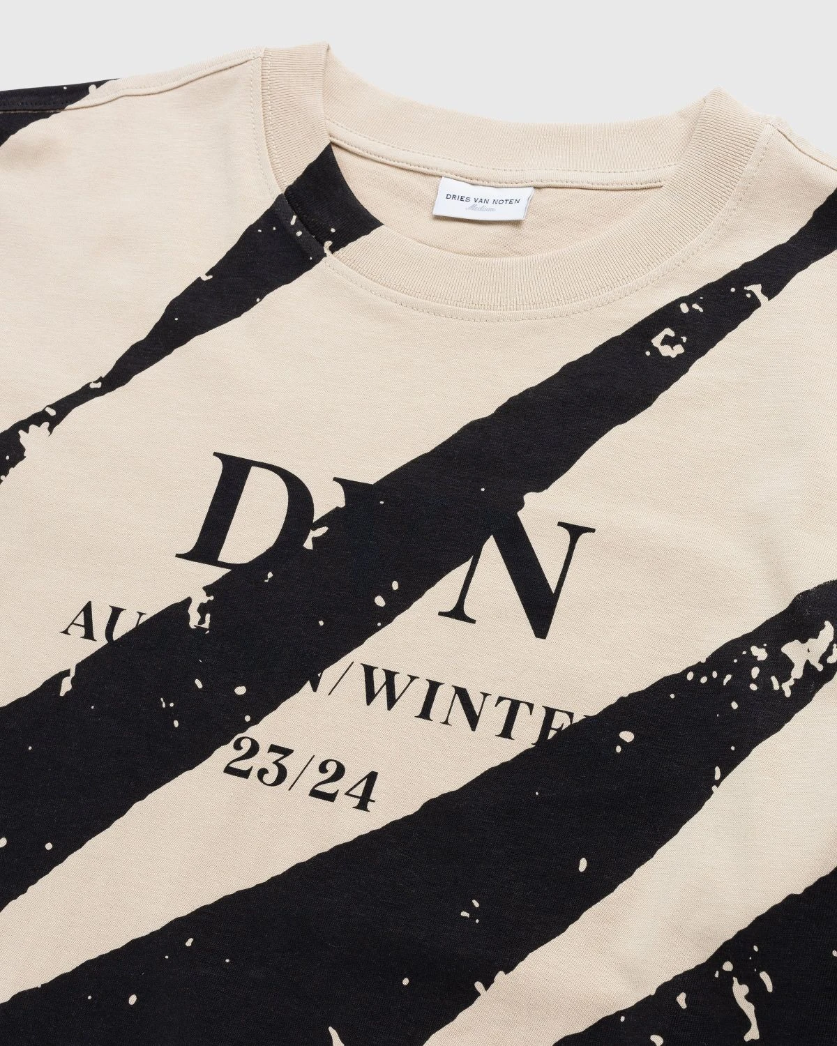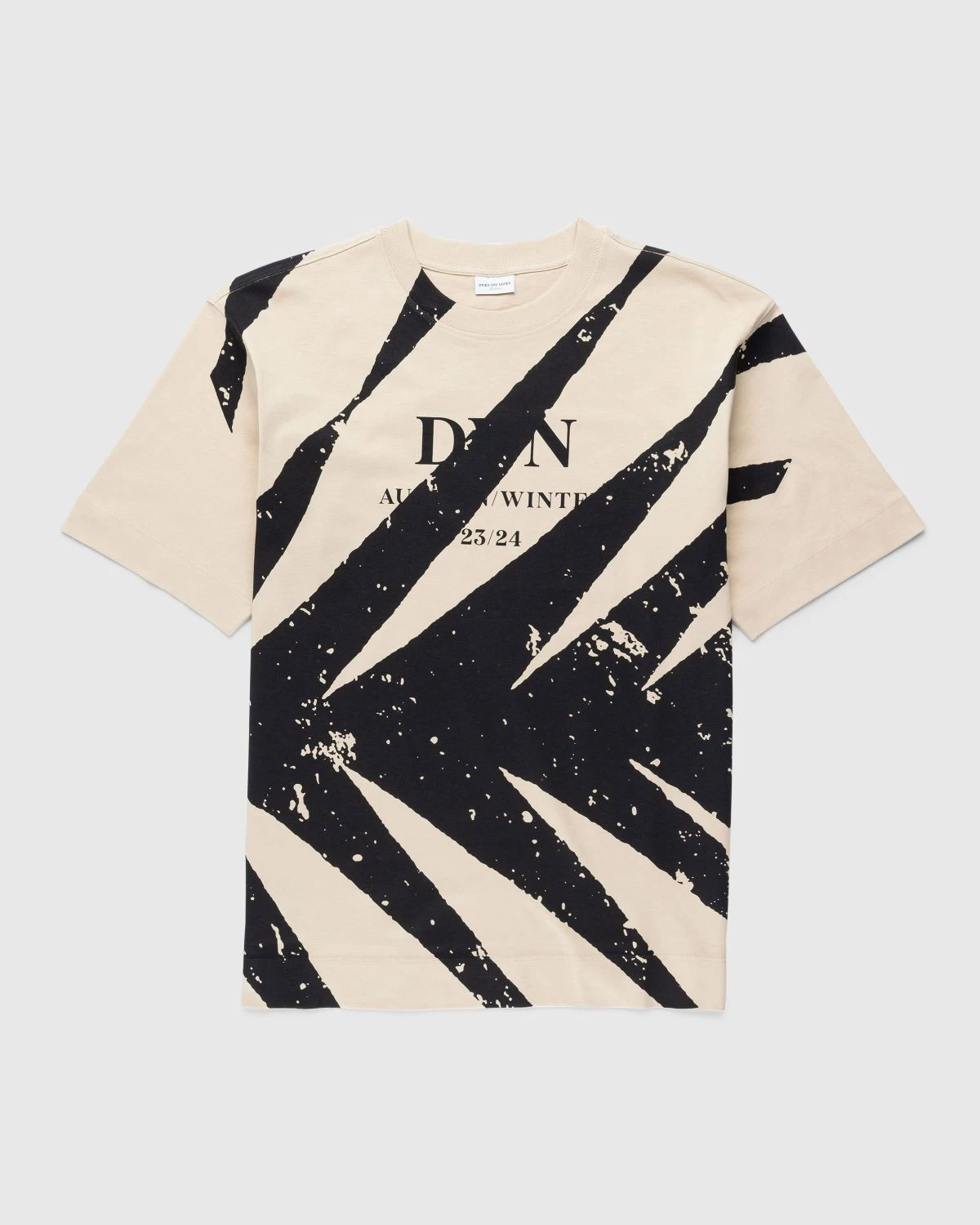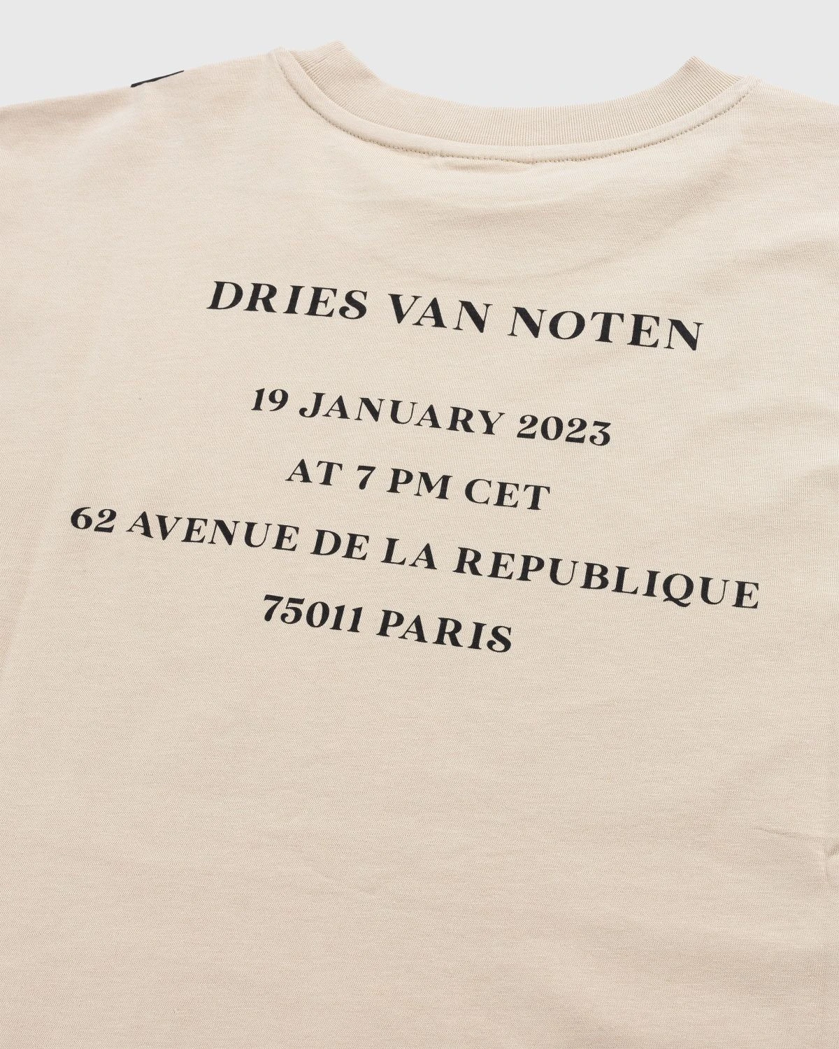 Dries van Noten and his eponymous label return with a new season showcasing its mastery of prints and patterns. The Helli PR βShowβ Jersey emerges in a tonal beige hue with a large graphic print across the front and. Cut in a spacious, loose fit for versatile wear, the t-shirt features the designerβs initials printed across the chest highlighting the recent collection, along with an additional print on the back where its AW23 show took place.