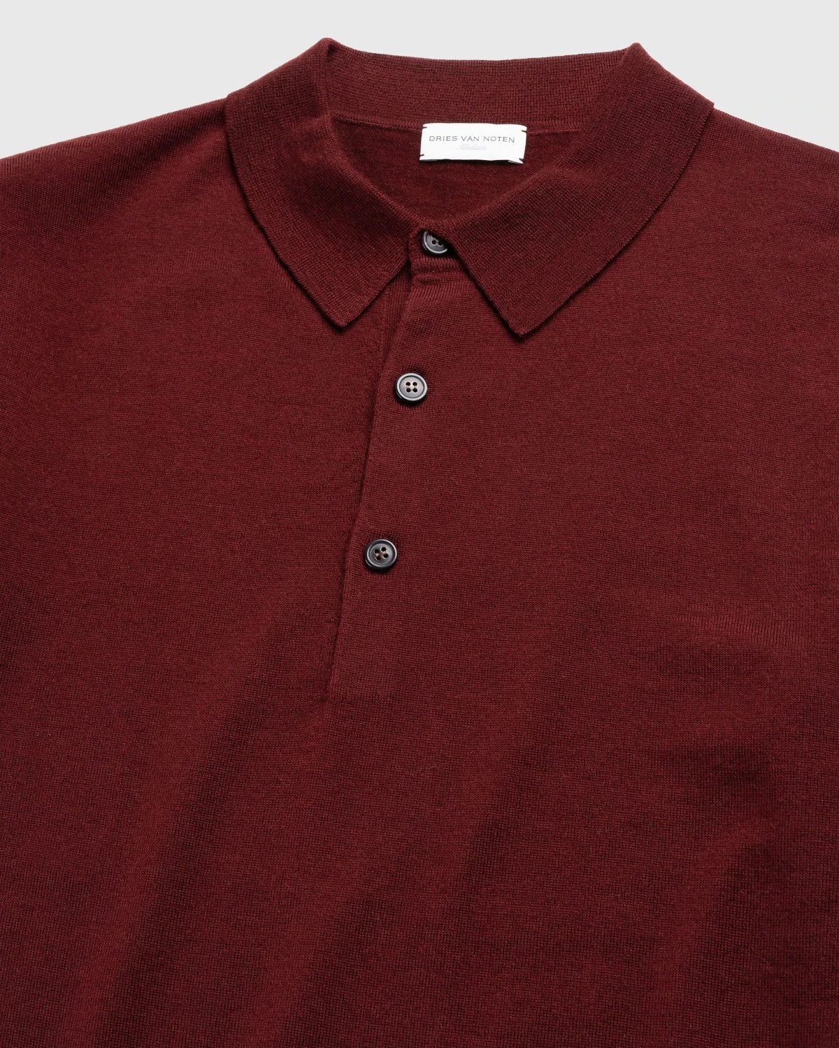 A nod to decades past, the Murice is Dries van Notenβs elevated take on the knit polo shirt and arrives in a vivid red colorway. The top is crafted from merino wool and features a ribbed knit hem and cuffs with a classic three-button closure.