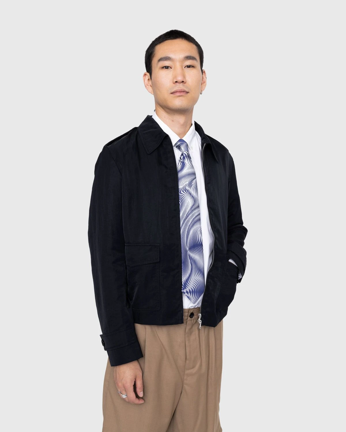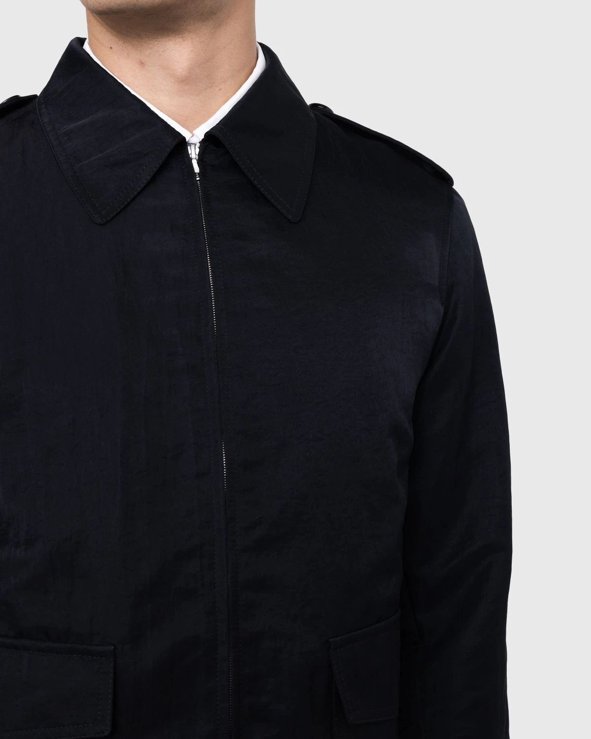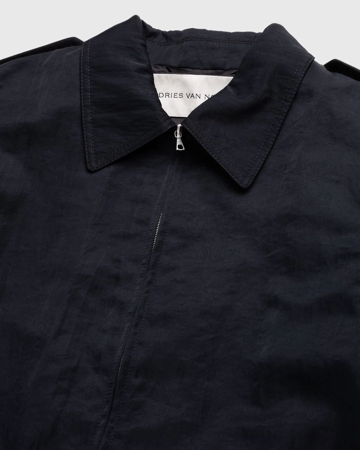 The Vallow is Dries van Notenβs high fashion take on the classic coaches jacket. Cut for a relaxed fit, the stealthy outerwear style is produced in a polyester fabric with a noticeable sheen that doubles as a water-repellent shell. The monochrome jacket is detailed with two-way front zip closure for versatility, interior and side pockets, and adjustable velcro tabs on the sleeves to style to your liking.