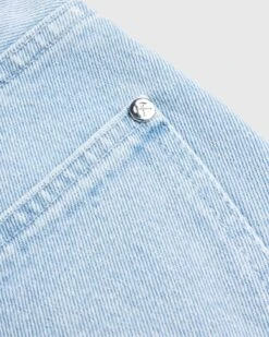 100% organic cotton. Five-pocket construction. Tonal embossed hardware and buttons. Button fastening. Single zipper at the front. Belt loops. Logo patch at the back waist. Unisex.