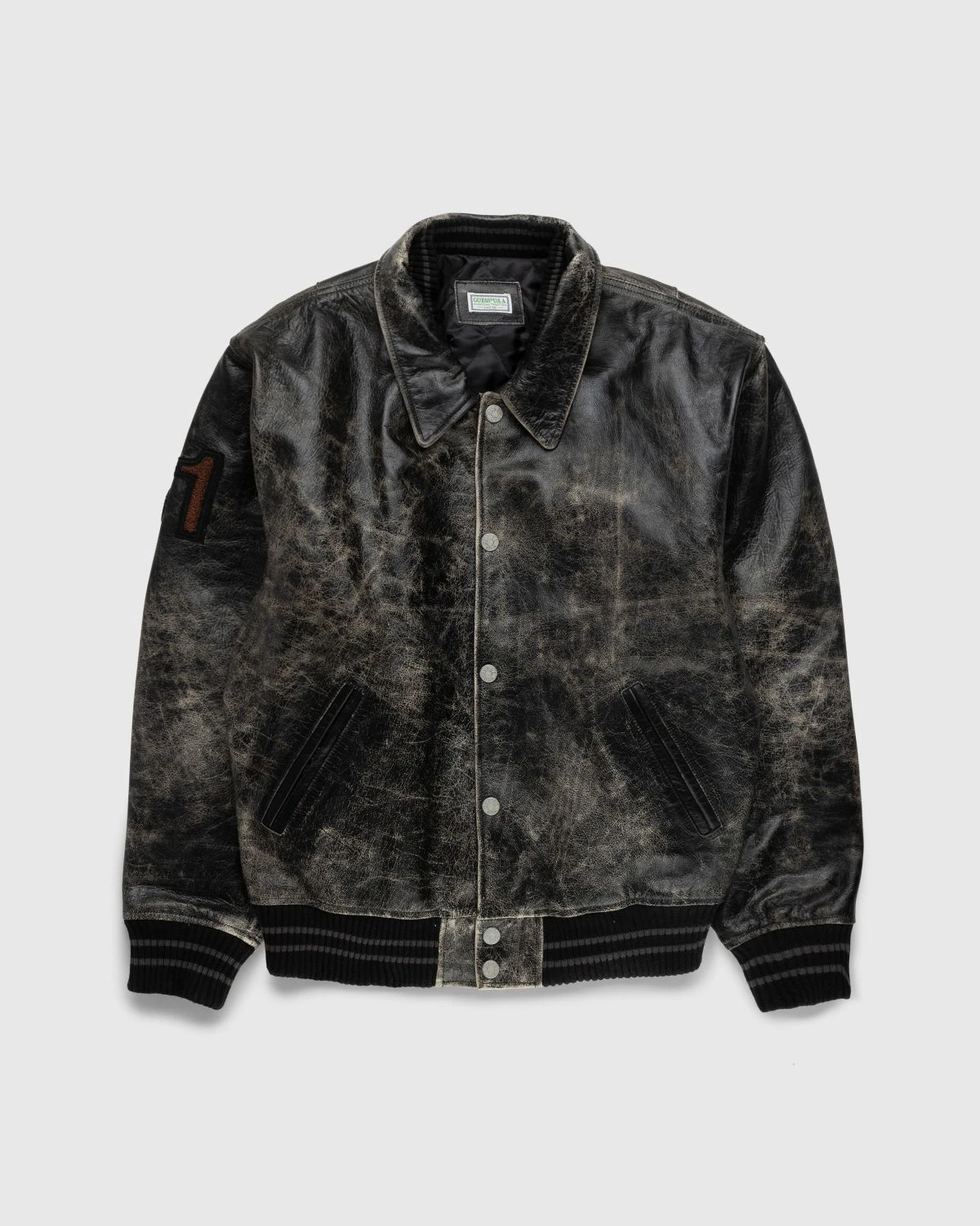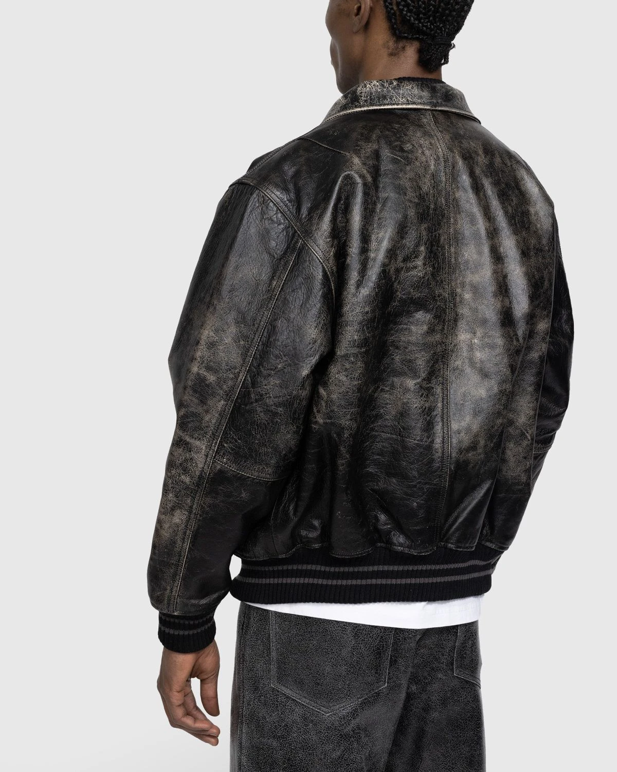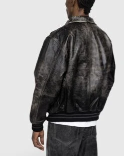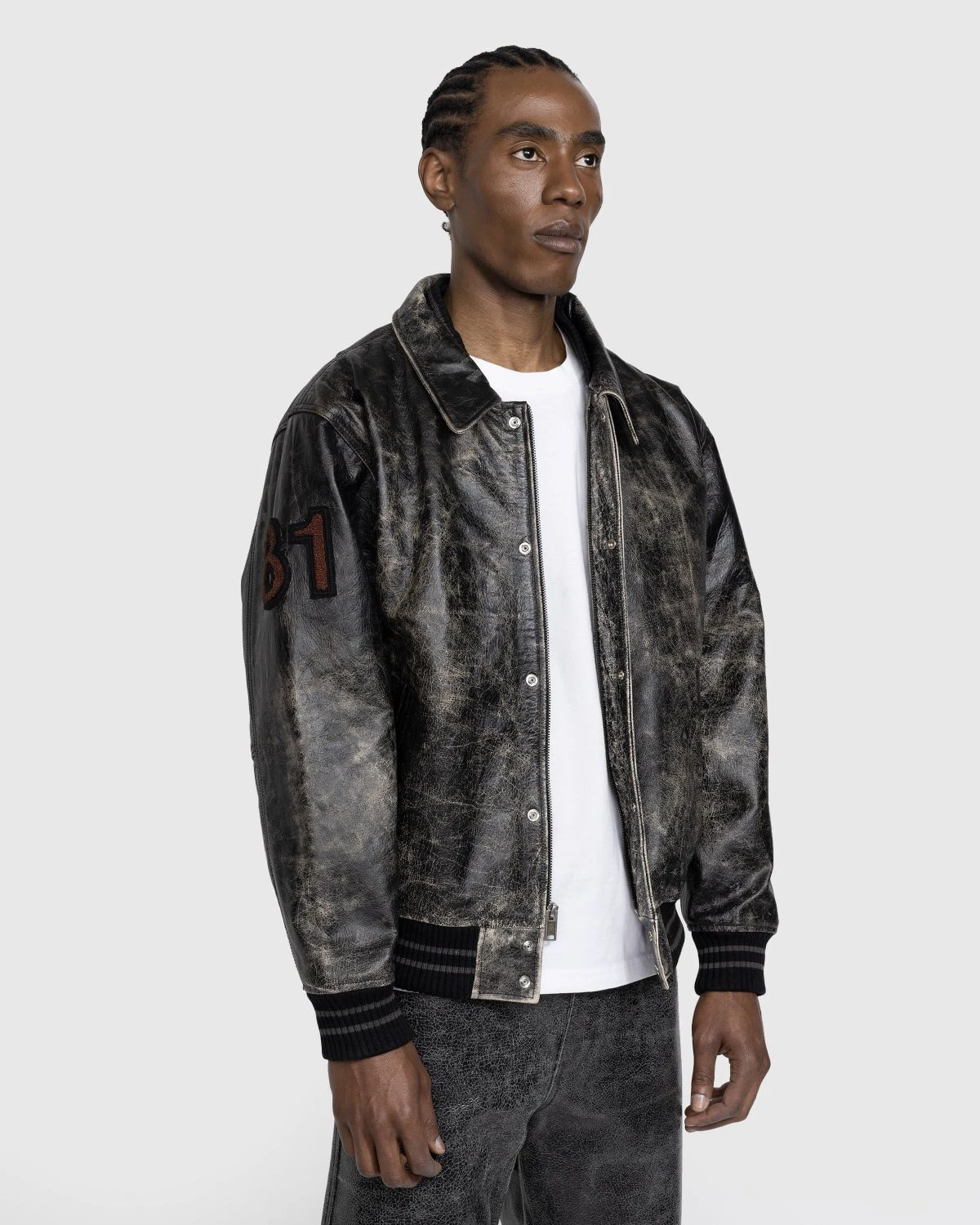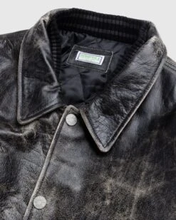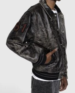 100% leather. Hand fading and distressing. Pointed collar. Branded snap button and concealed zip closure. Ribbed inner collar, cuffs, and hem. Front hand pockets. Logo detail at the right sleeve.