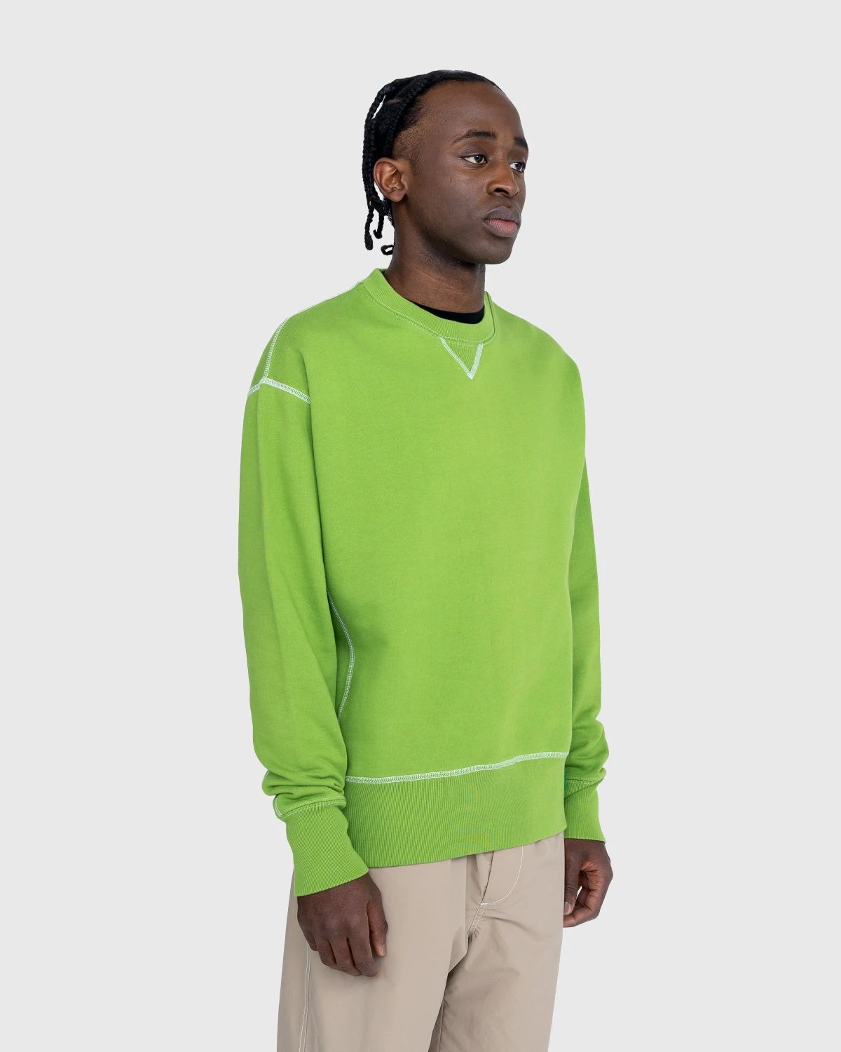 Produced in a hard-wearing fleece fabric, the Contrast Stitch Crew is our take on a wardrobe staple. Featuring traditional design elements, such as a V-gusset at the neck, it has been elevated through white contrast stitching and thick ribbed trims. The crewneck style is cut in a slightly oversized, boxy fit. Branding is minimal by design, implemented as a small Highsnobiety flag label.