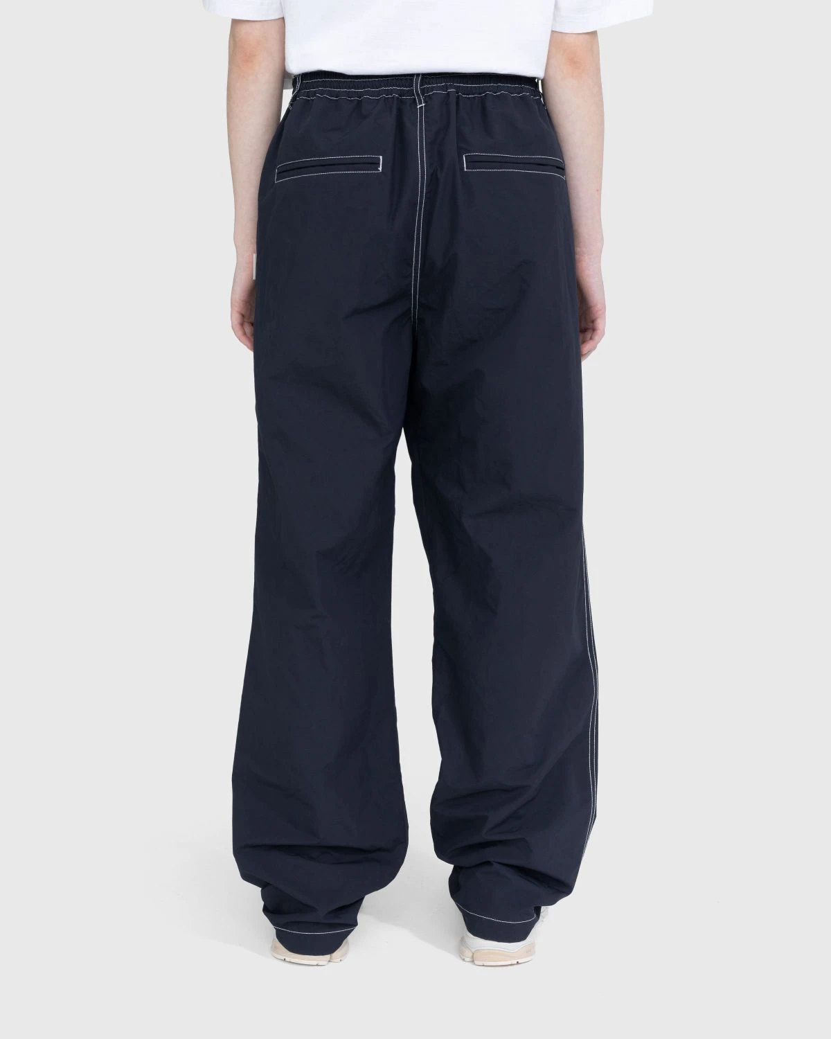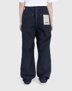 This casual, wide-leg pants style is crafted from a light, water-repellant Japanese fabric that is accented by white contrast stitching. Minimal branding is offered through a subtle flag label on the left leg and branded metal button at the waist. An elastic waist with an internal drawstring enhances overall comfort while belt loops offer a further way to dial in a proper fit. The trouser style features side-seam pockets along with back pockets on either leg.