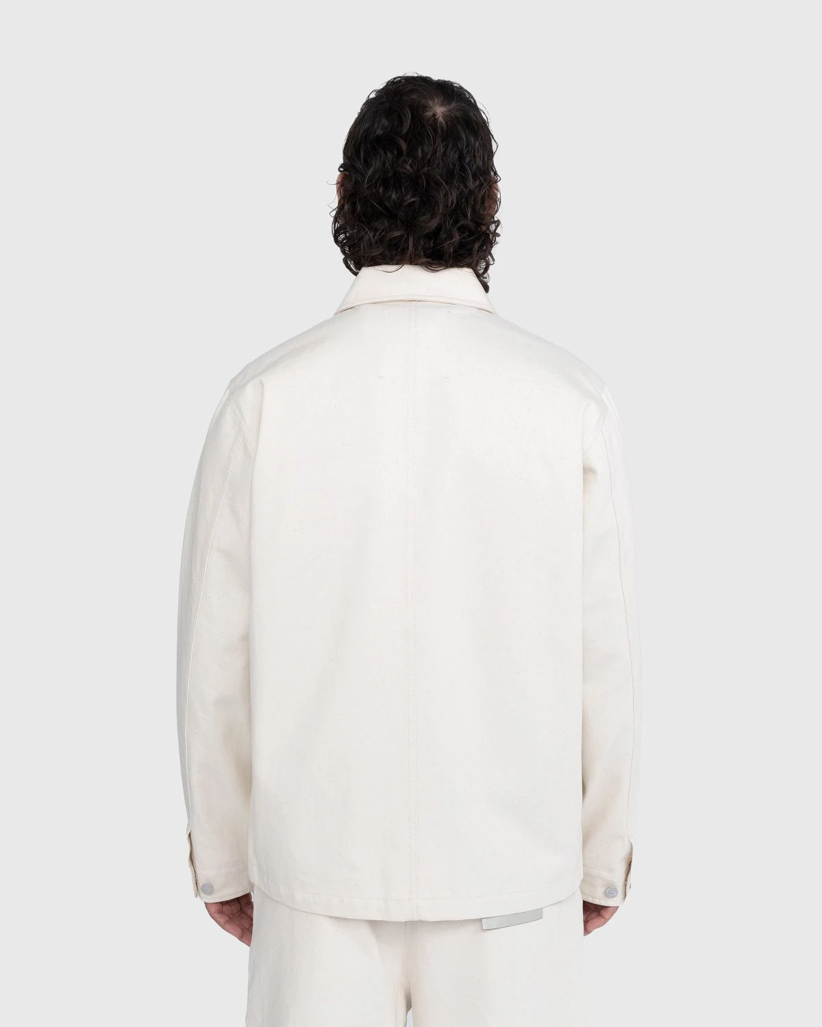 Inspired by the function-first design of workwear, this jacket is a modernized take on the classic chore jacket. Arriving in neutral colors with silver-toned, branded hardware and a boxy fit, it features two large front pockets and a flag label on the left side. The jacket is crafted from hard-wearing, organic drill cotton with matching pants also available.