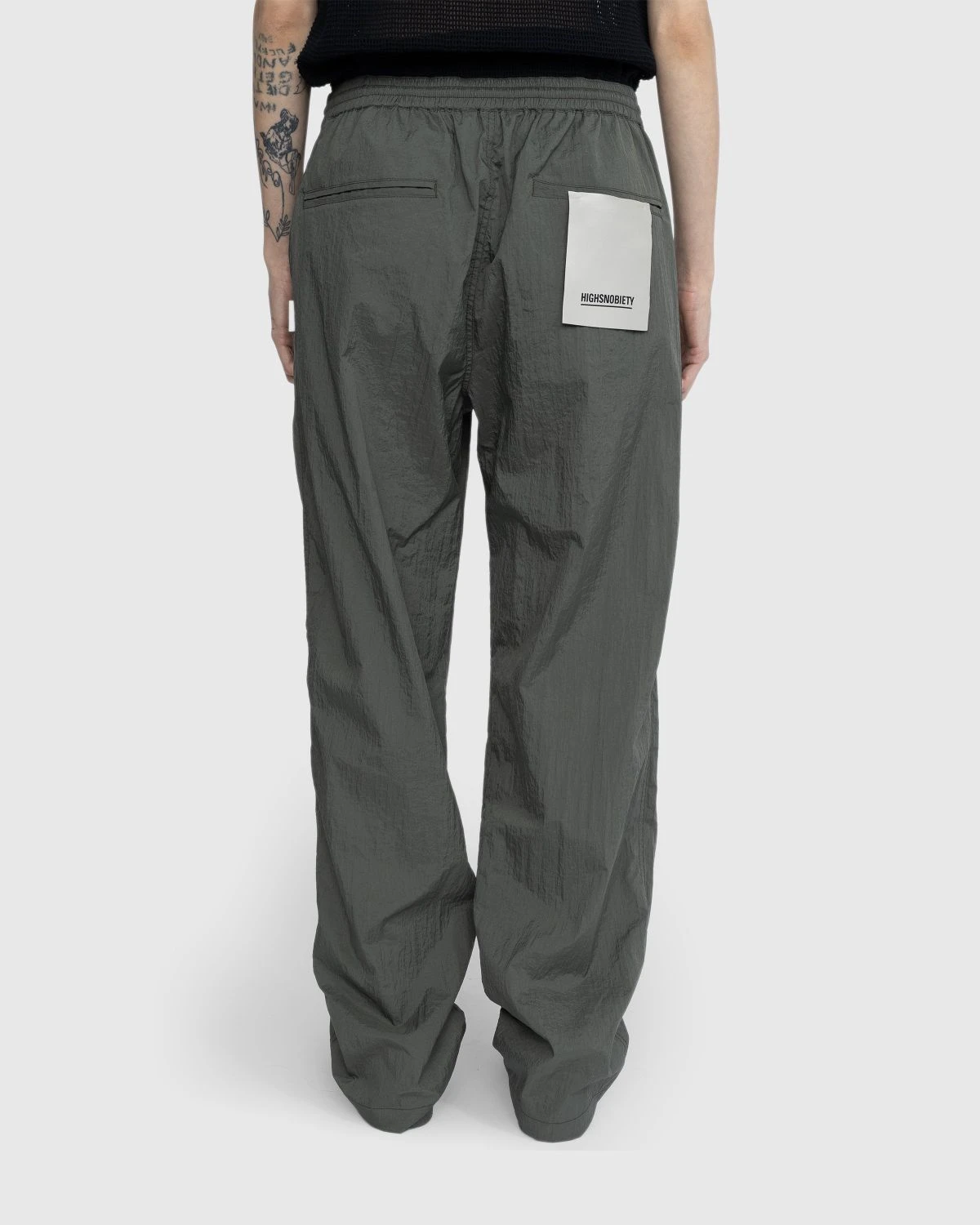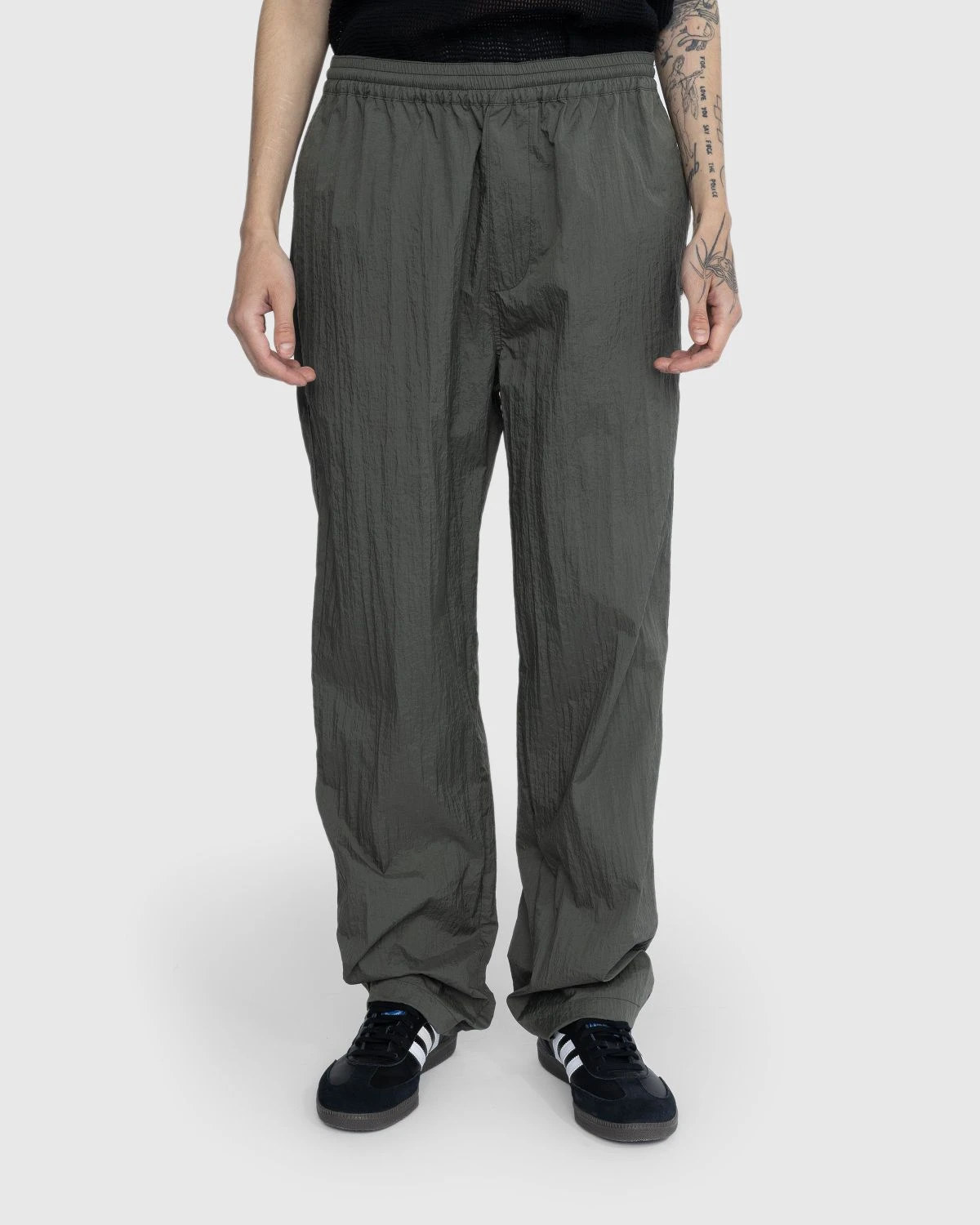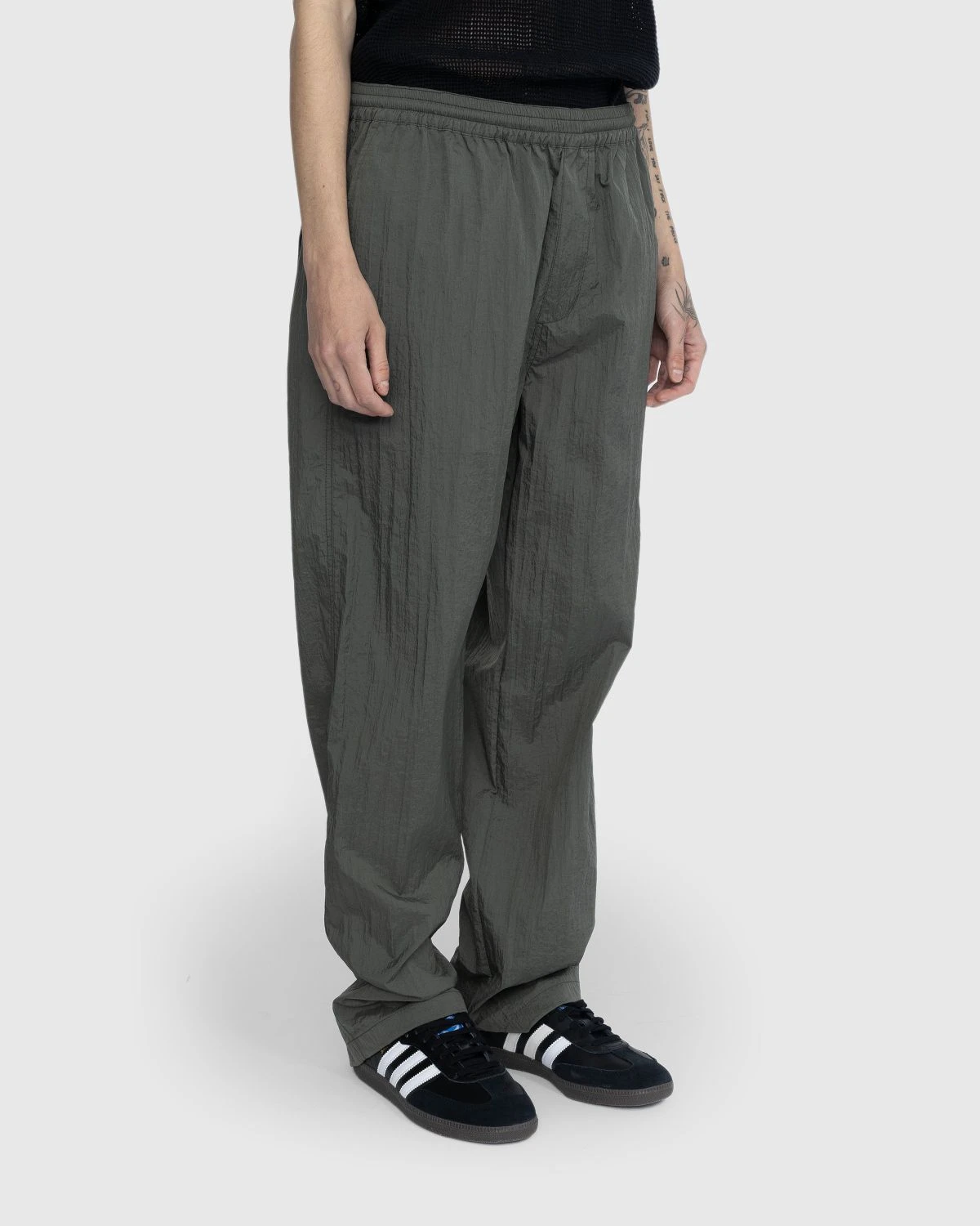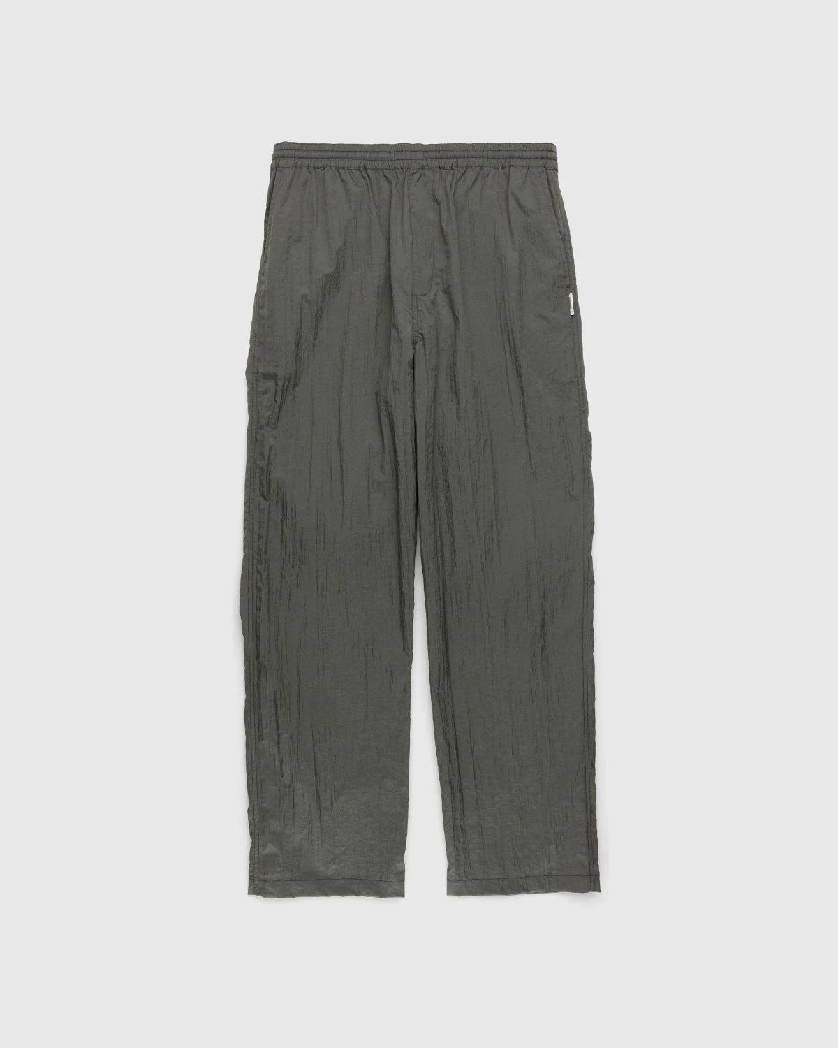 Crafted from lightweight Japanese nylon fabric, this casual legwear style is characterized by the textured finish of its fabric which is caused by a heat process. The loose-fit style has side seam pockets along with two back pockets with a small flag label on the left side. An elastic waist with an internal drawstring enhances overall comfort and lets you dial in the proper fit. This pair of pants arrive along with a matching shirt jacket in the latest Highsnobiety collection.