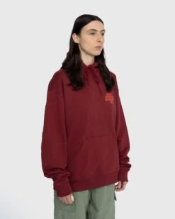 Celebrating Milan Design Week, the worldβs biggest annual design event, weβve created our own co-branded merch. This graphic hoodie is designed with a small chest print and large back graphic that highlight the event. Arriving in burgundy, the hoodie has a slightly oversized fit with a front pouch pocket and adjustable drawstring hood.