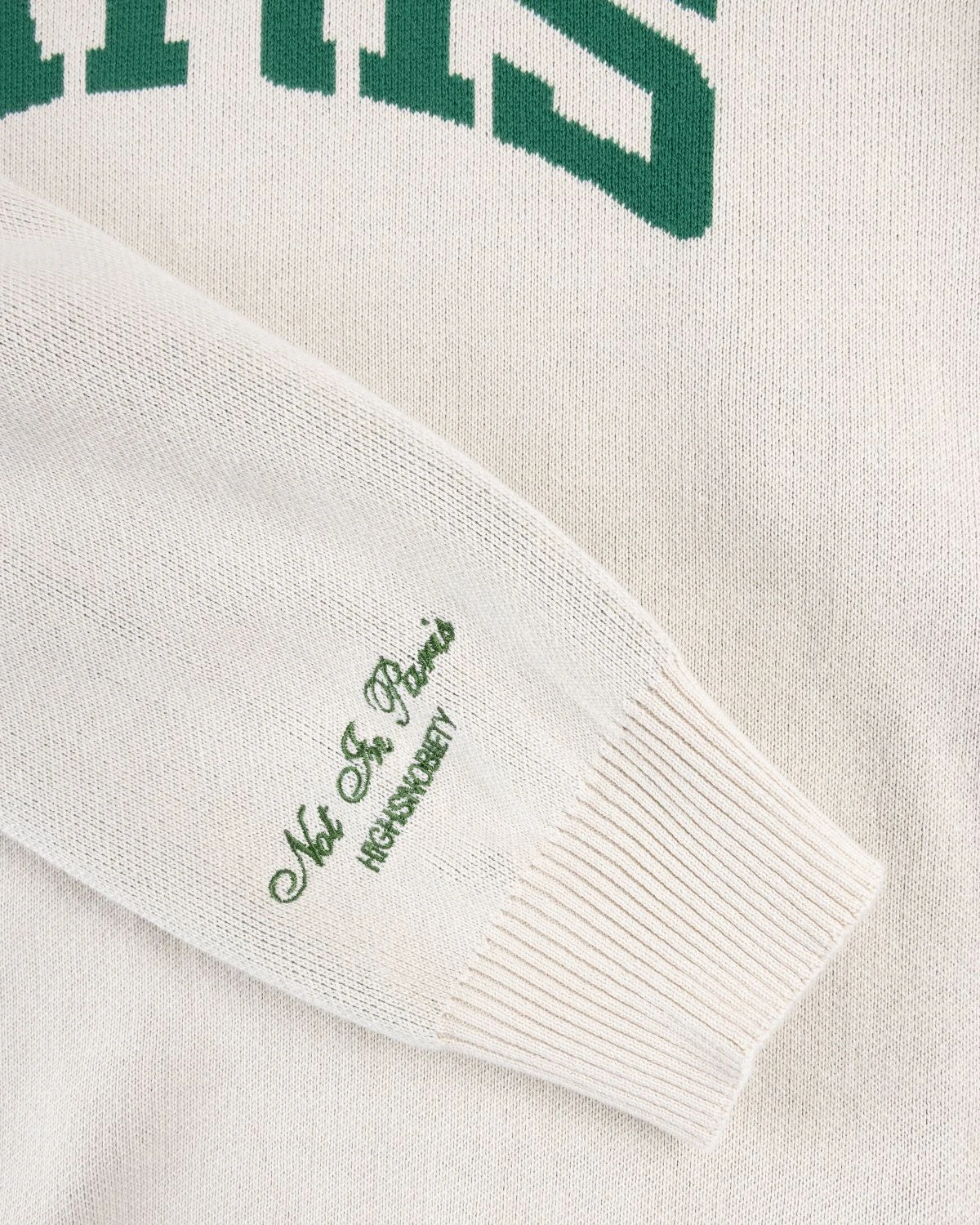 Inspired by classic collegiate styles, this sweater celebrates one of the main fashion capitals through its knitted chest graphic. Elsewhere, the right sleeve of this boxy-fitting sweater features embroidered branding. This is one of many pieces specifically designed to commemorate the fifth edition of Not In Paris, a multi-media event hosted by Highsnobiety featuring a selection of our favorite brands, artists, musicians, and other creators leading the charge in pushing culture forward. Coinciding with menβs fashion month, Not In Paris 5 hones in on the defining aspects of Paris, its people, and institutions, with collaborative capsules and inline releases spanning cut and sew, graphic styles, accessories, and collectibles.