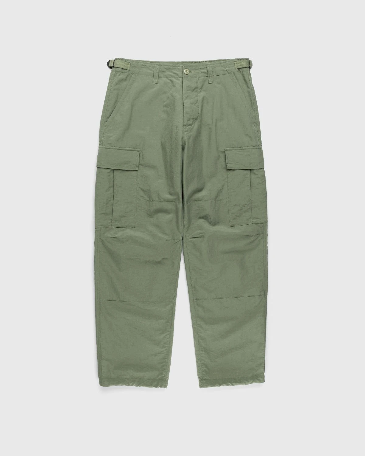 These cargo pants are characterized by their durability, being constructed from Japanese ripstop nylon fabric. The pair features a textured finish and is reinforced with a double layer of fabric at the knees and back seat area. Buckles at the waist allow you to achieve a more precise fit, while ankle cinch cords let you further adjust the shape. The hard-wearing bottoms are then finished with button-down cargo and back pockets, with a small Highsnobiety woven label featured on the right back pocket.