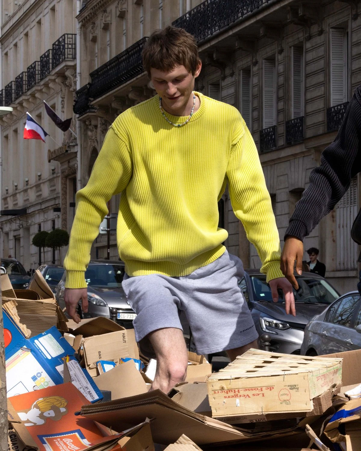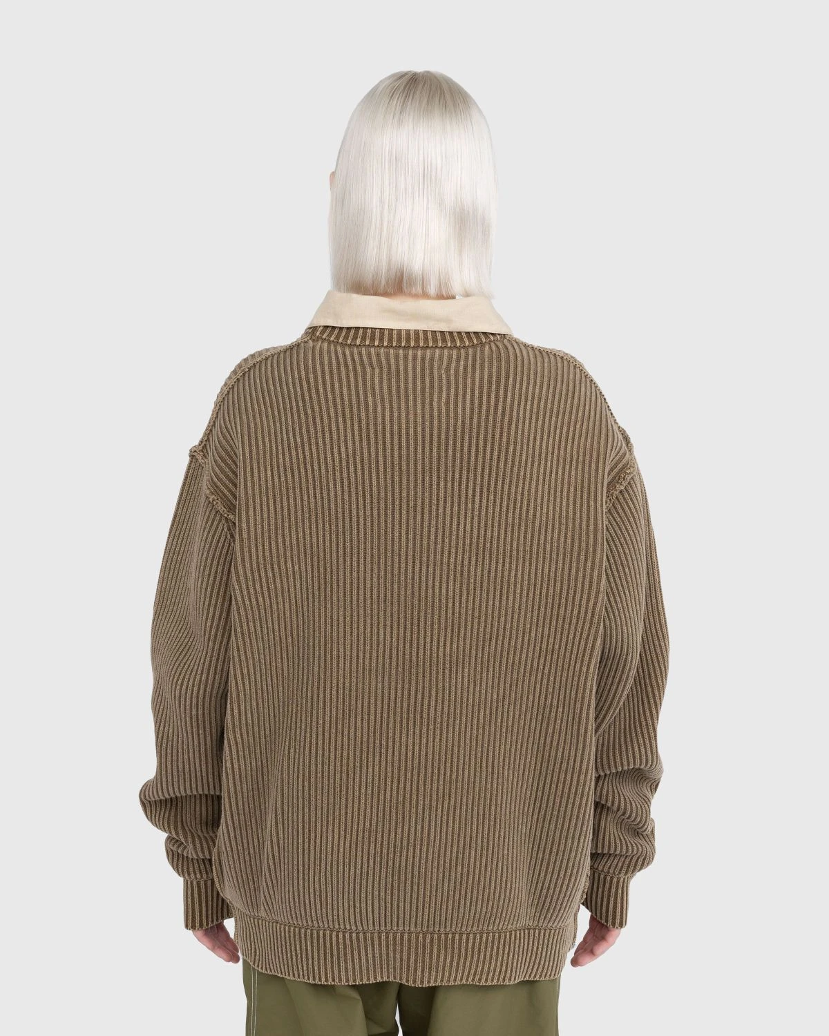 Thanks to its pigment dye and wash, this sweater has the vintage-looking finish of an already worn-in piece of knitwear. The uneven pigmentation draws attention to its construction and the textured, ribbed knit. Cut with a boxy fit, the sweater features external seams that give it a more pronounced shape. Crafted from 100% cotton, there is also a matching sweater vest for days when it’s too hot for sleeves in the latest Highsnobiety collection.
