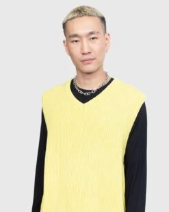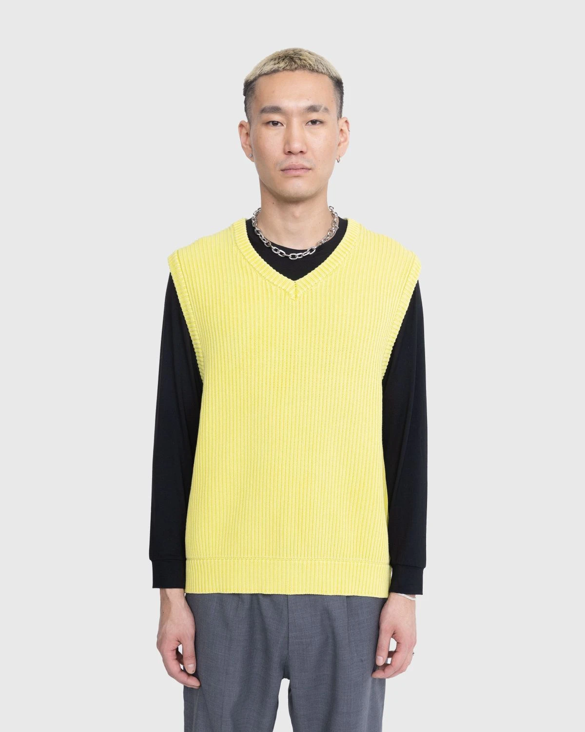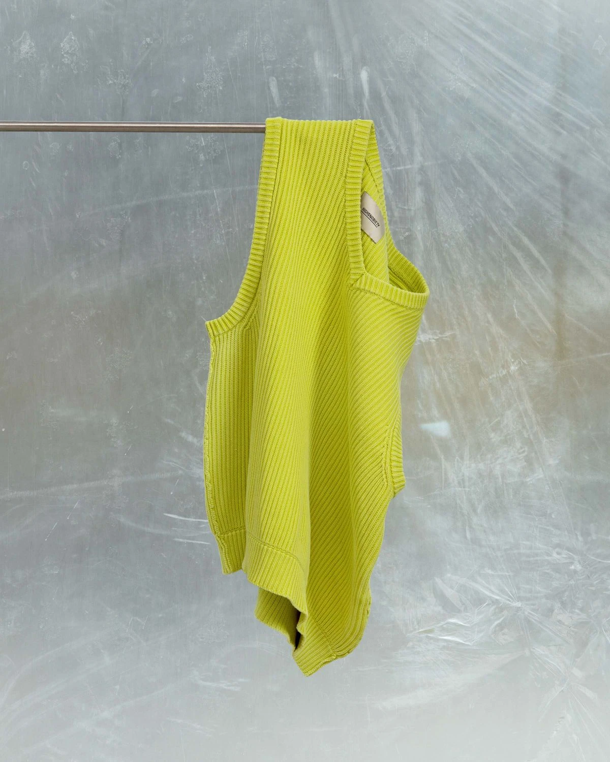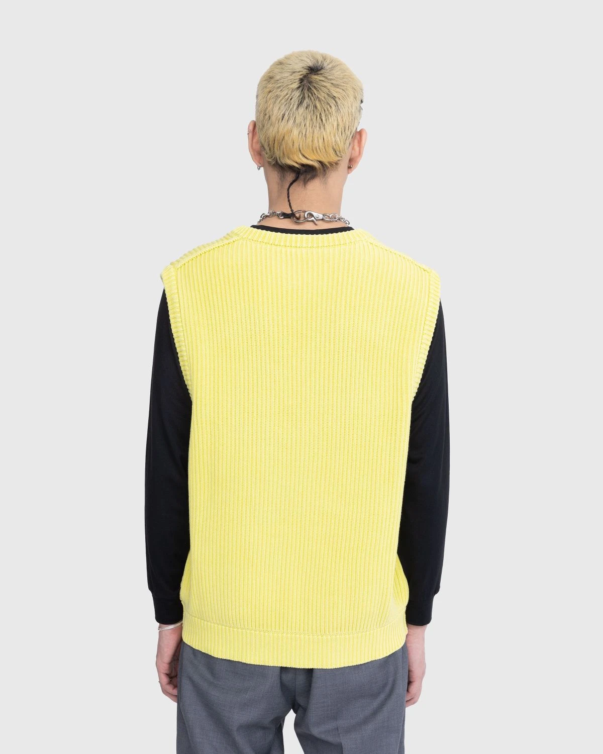 Thanks to its pigment dye and wash, this sweater vest has the vintage-looking finish of an already worn-in piece of knitwear. The uneven pigmentation draws attention to its construction and the textured, ribbed knit. Cut with a loose fit and V-shaped neckline, the sweater vest features external seams that give it a more pronounced shape. Crafted from 100% cotton, there is also a matching sweater for days when it’s too cold to go sleeveless.