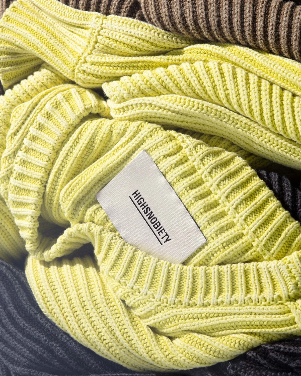 Thanks to its pigment dye and wash, this sweater has the vintage-looking finish of an already worn-in piece of knitwear. The uneven pigmentation draws attention to its construction and the textured, ribbed knit. Cut with a boxy fit, the sweater features external seams that give it a more pronounced shape. Crafted from 100% cotton, there is also a matching sweater vest for days when it’s too hot for sleeves in the latest Highsnobiety collection.