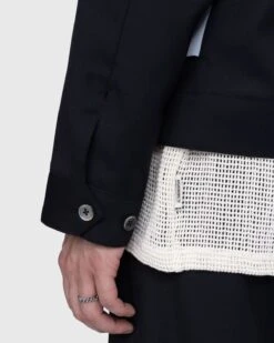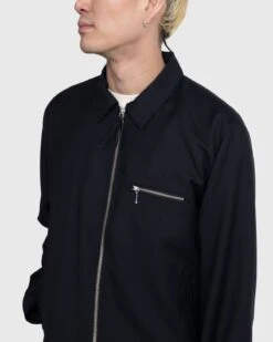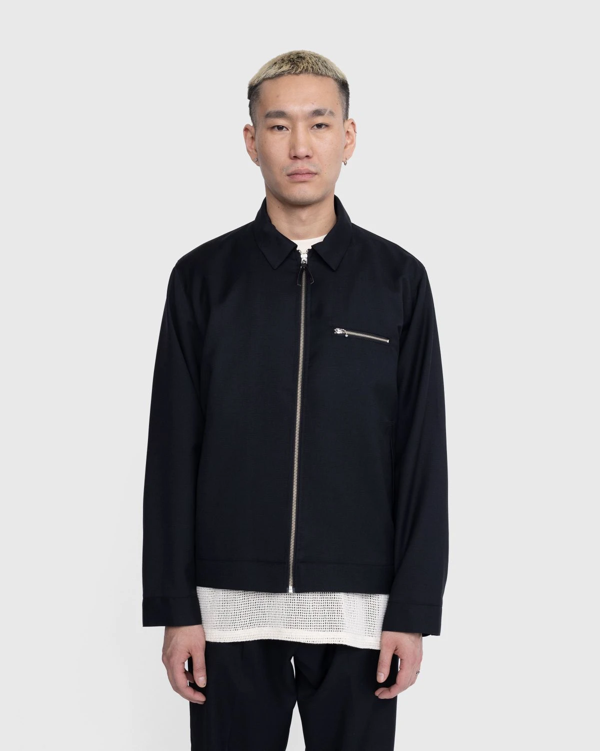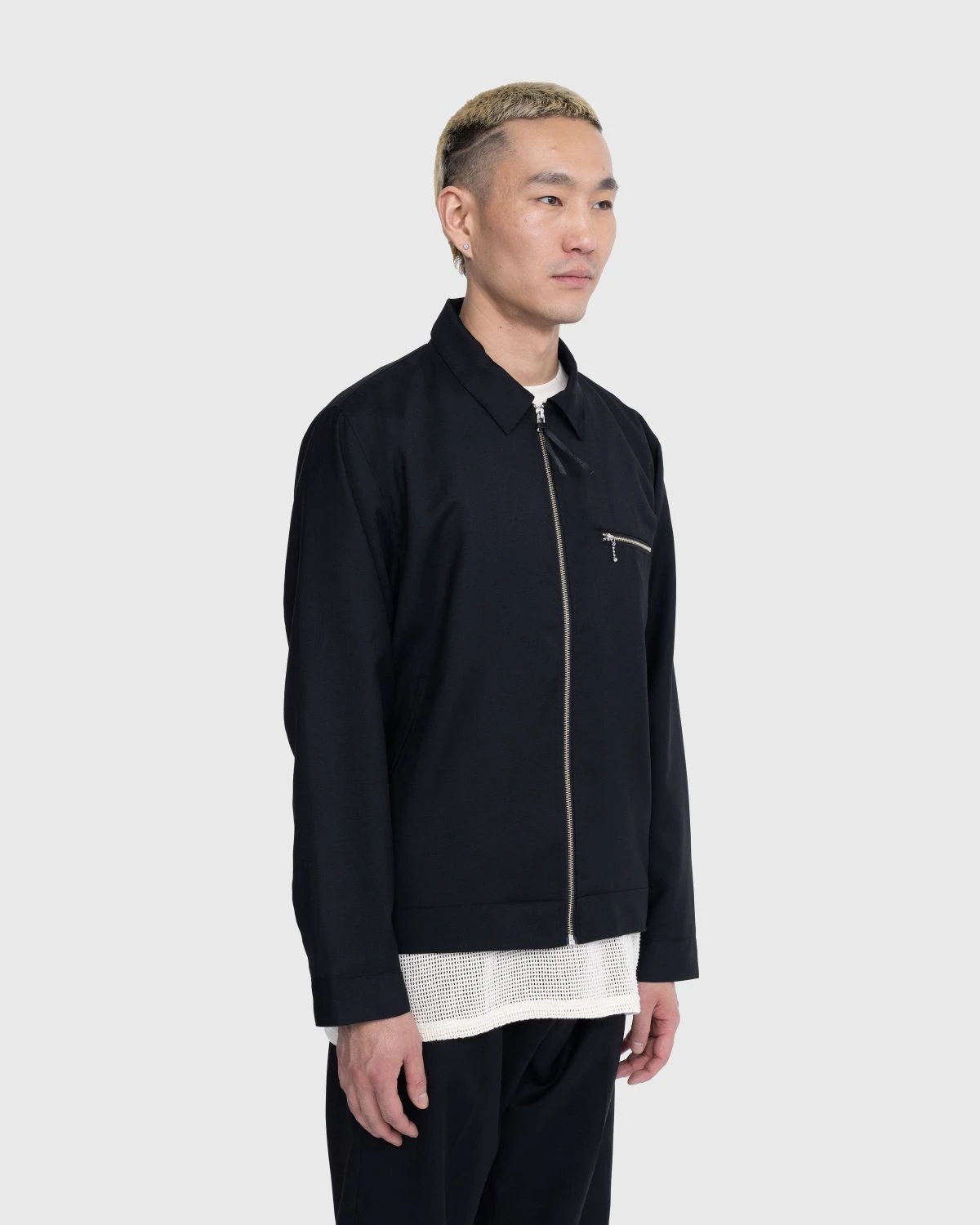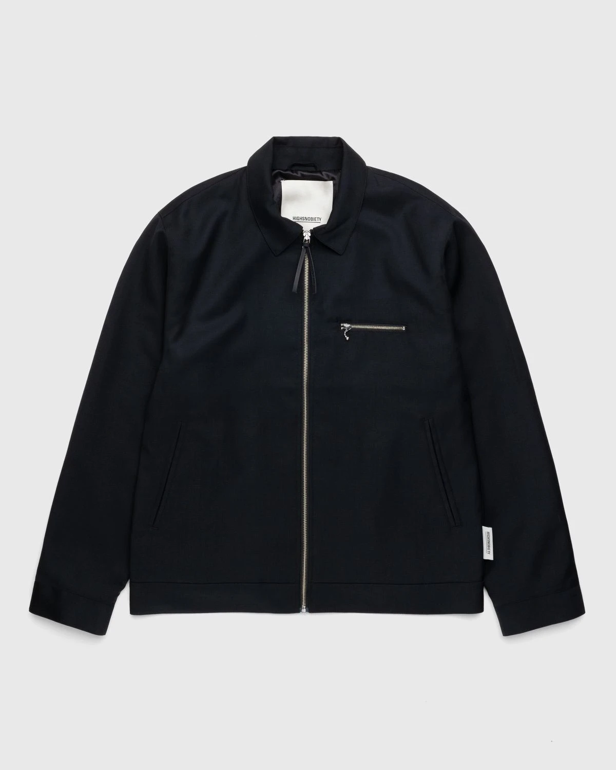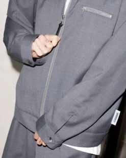 This casual zip-up jacket has been elevated through its lightweight, wool-blend fabric, most regularly found in suiting, as well as its subtle details. It features a chest pocket with a silver zip, accompanied by two slanted pockets on either side and an internal pocket. Further detailing comes in the form of a satin lining, a debossed matte black zip pull, and an internal hang loop at the collar. There are also matching suit pants and shorts available from Highsnobiety.