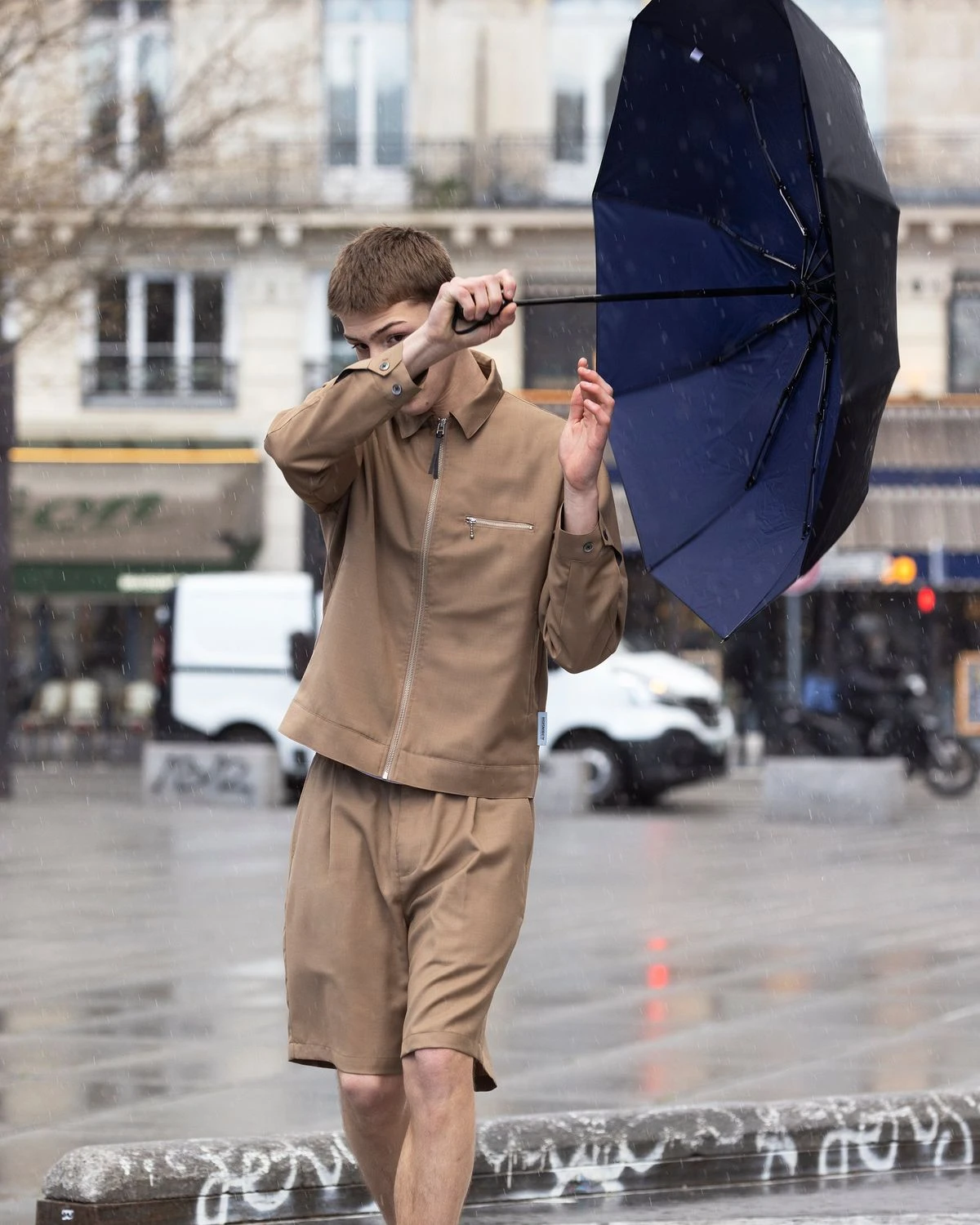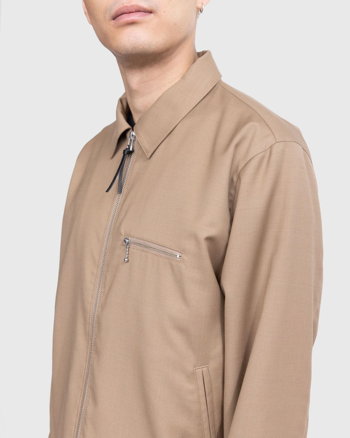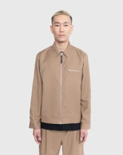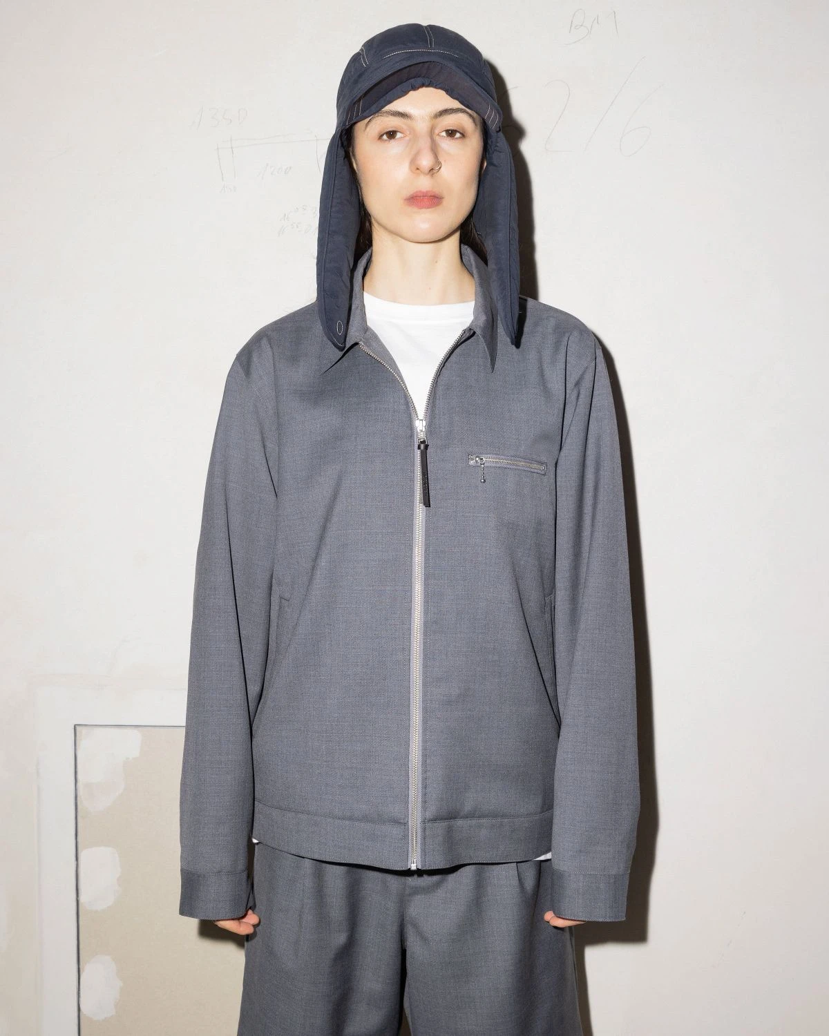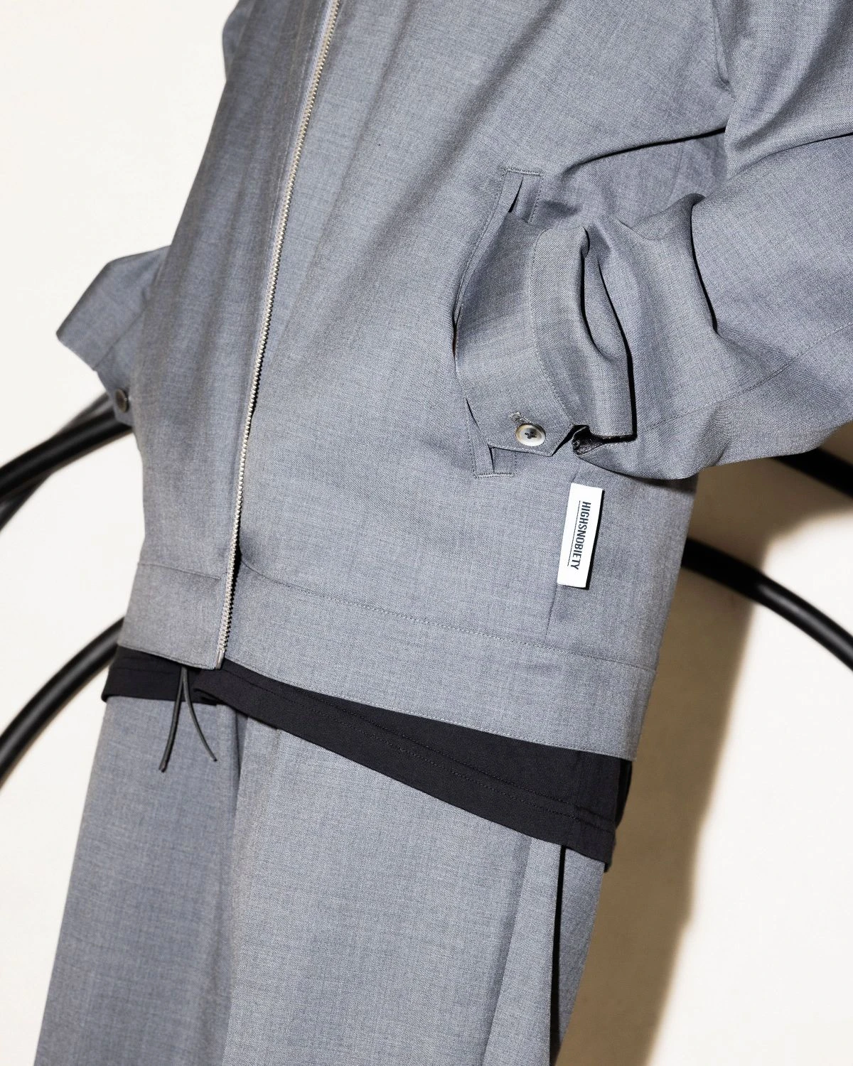 This casual zip-up jacket has been elevated through its lightweight, wool-blend fabric, most regularly found in suiting, as well as its subtle details. It features a chest pocket with a silver zip, accompanied by two slanted pockets on either side and an internal pocket. Further detailing comes in the form of a satin lining, a debossed matte black zip pull, and an internal hang loop at the collar. There are also matching suit pants and shorts available from Highsnobiety.