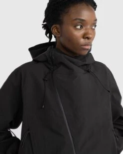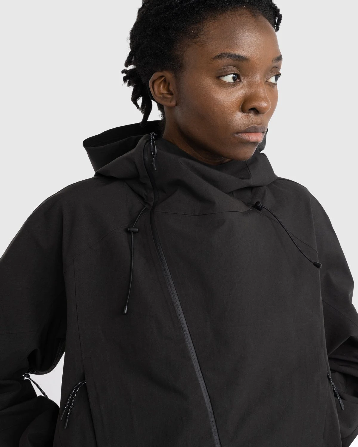 The Manifold Jacket is defined by J.L-A.Lās signature paneled design technique engineered for ease of movement and overall functionality. Made up of two half jackets sewn together, the innovative piece is constructed from ultralight textured nylon, with pop buttons that allow the drape to be adjusted. Secure pop fasten pockets are incorporated onto the front of the garment for added security when carrying small valuables.