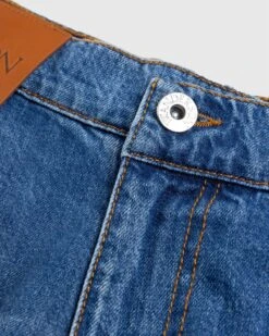 JW Anderson reimagines a classic workwear silhouette for its latest collection. The relaxed-fit jeans feature twisted seams all throughout the pants and come bearing a low waistband, asymmetric side pockets with the brandβs anchor logo embroidered, and a carpenter’s loop to stay true to its functionality. The pants are finished with a stonewashed texture, contrast stitching, and an embossed leather patch across the waist.