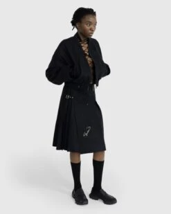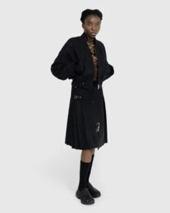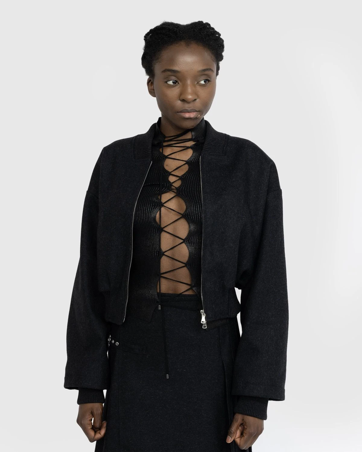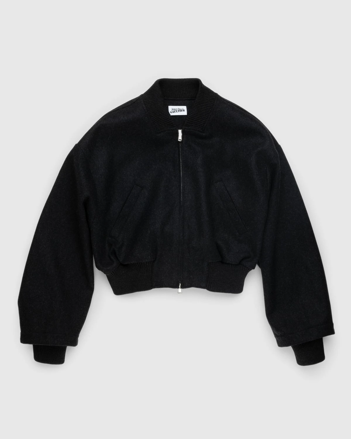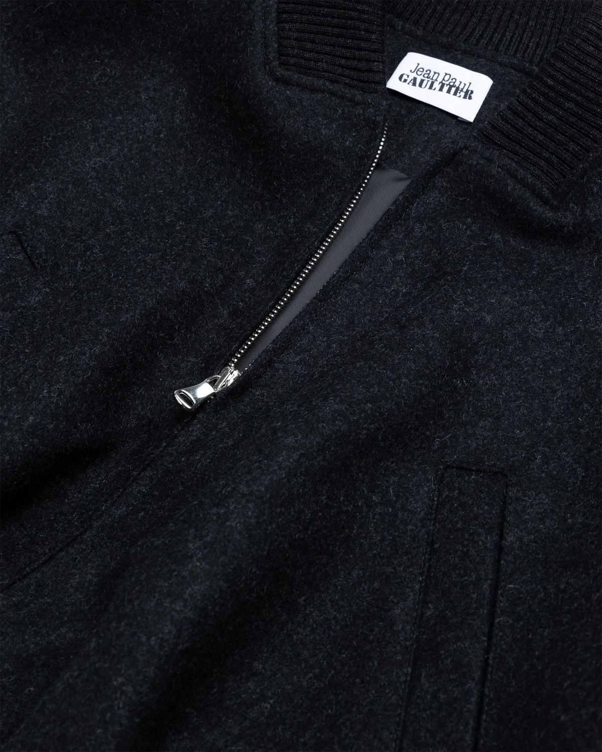 The Felted Wool Bomber is included in Jean Paul Gaultierβs retro-futuristic Cyber collection, which consists of polarizing ready-to-wear styles that point to the houseβs iconic β90s archives. Predominantly constructed from felted wool, the jacket is cut in an oversized, cropped fit. It features tone-on-tone decorative topstitching, rib knit trims, a metal zip fastening, and functional pockets.