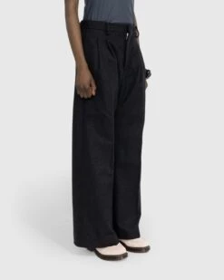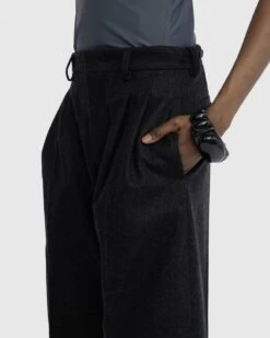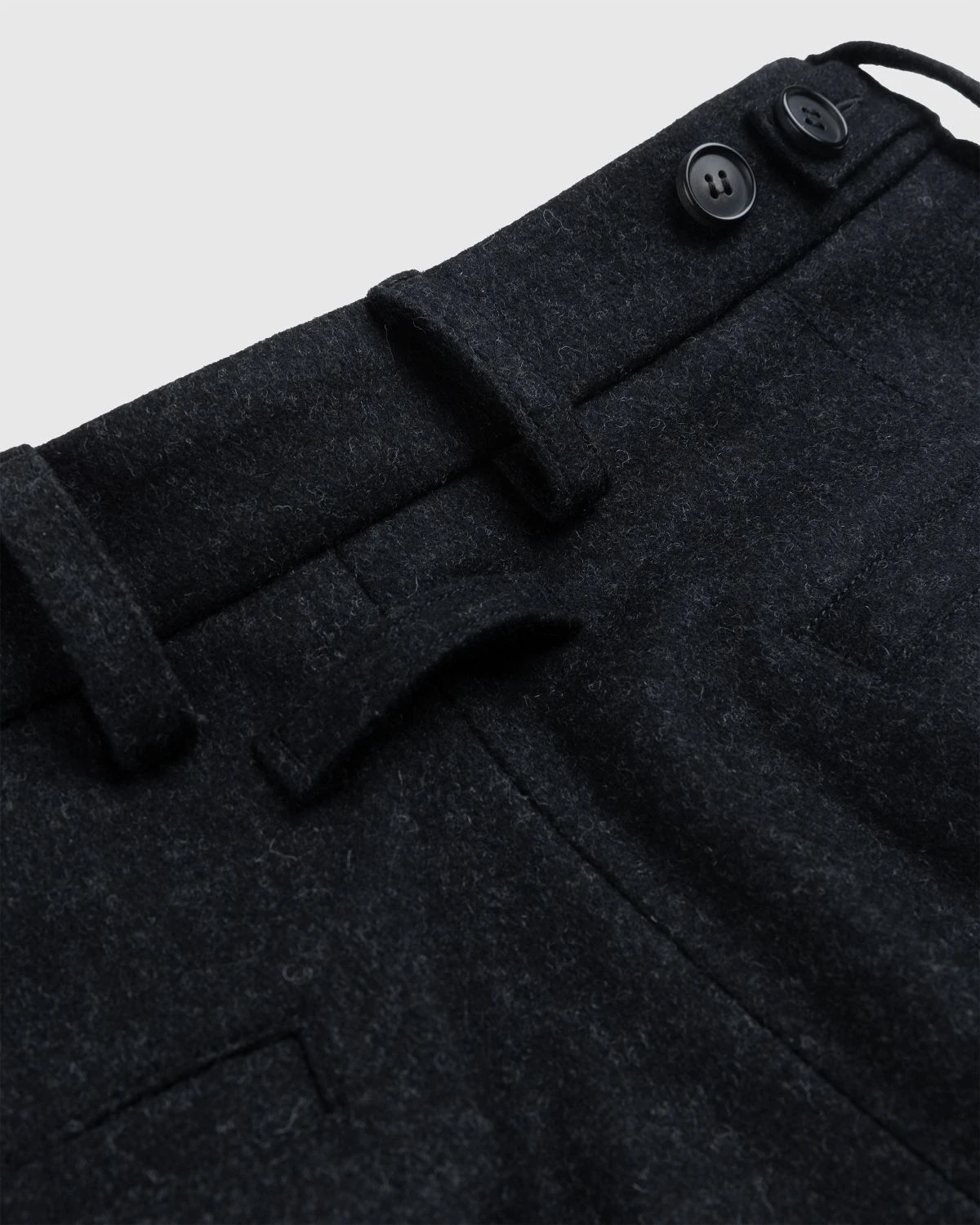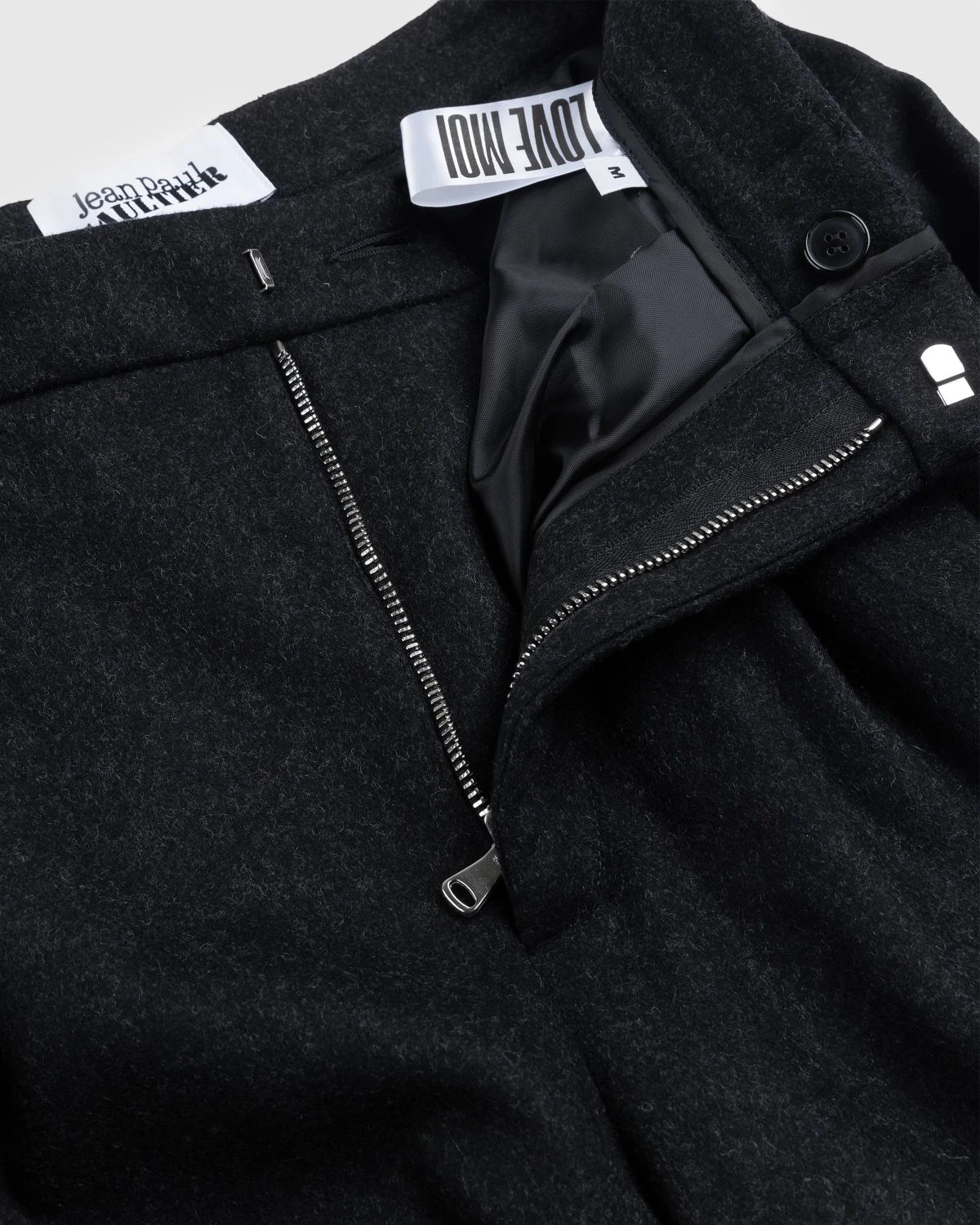 The Felted Wool Suit Pants are included in Jean Paul Gaultierβs retro-futuristic Cyber collection, which consists of polarizing ready-to-wear styles that point to the houseβs iconic β90s archives. As the name suggests, the pair is predominantly constructed from wool, featuring a wide cut and low rise. The dark grey style is made with front pleats, belt loops, side adjusters, and a classic four-pocket design.