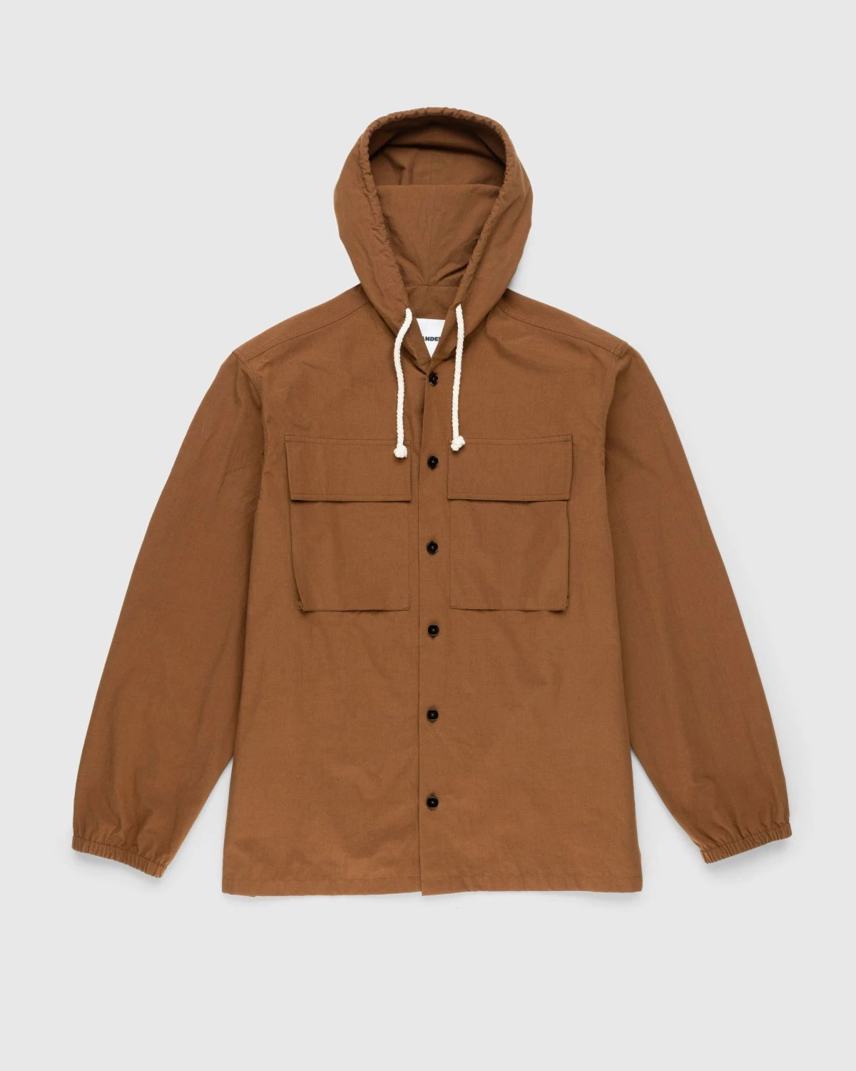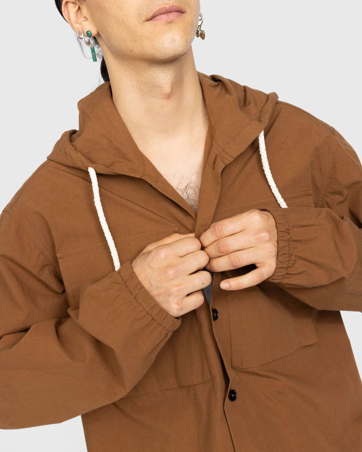 The Hooded Overshirt is a lightweight seasonal style capable of being worn on its own or layered over additional garments. It is crafted from organic cotton and cut for a straight, boxy fit. Details include a front button closure, an adjustable drawstring hood, and elasticated cuffs, with two patch pockets incorporated on the chest.