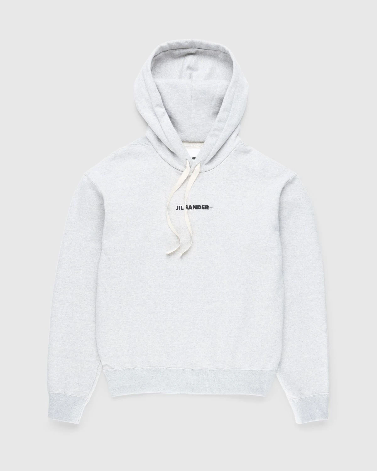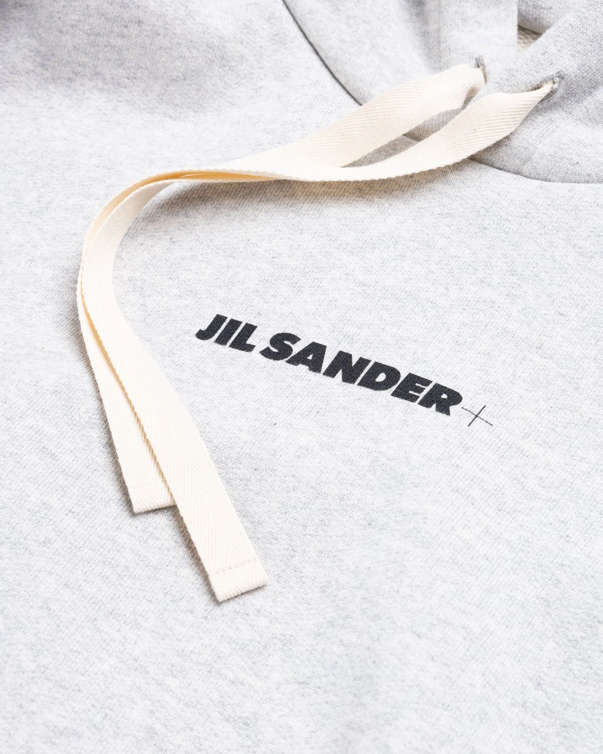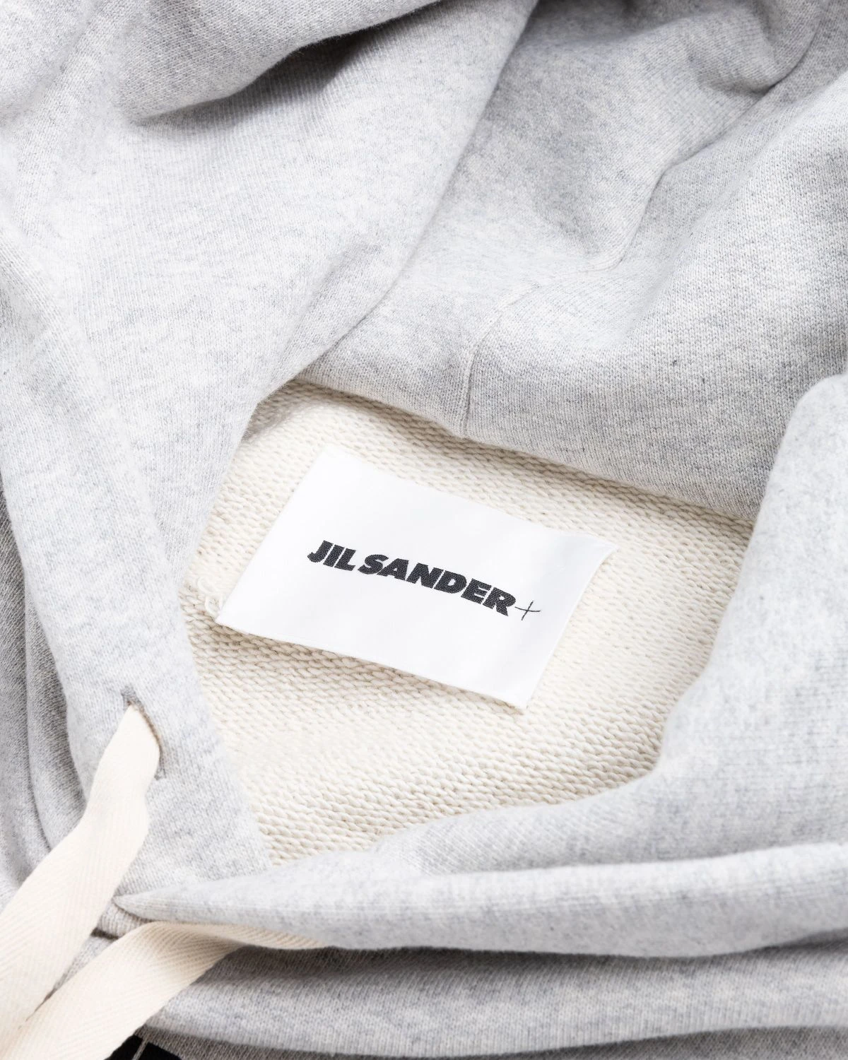Primary fabric is 100% cotton. Secondary fabric is 94% cotton and 6% elastane. Pullover style. Adjustable drawstring hood. Ribbed cuffs and hem. Jil Sander+ logo at the chest.