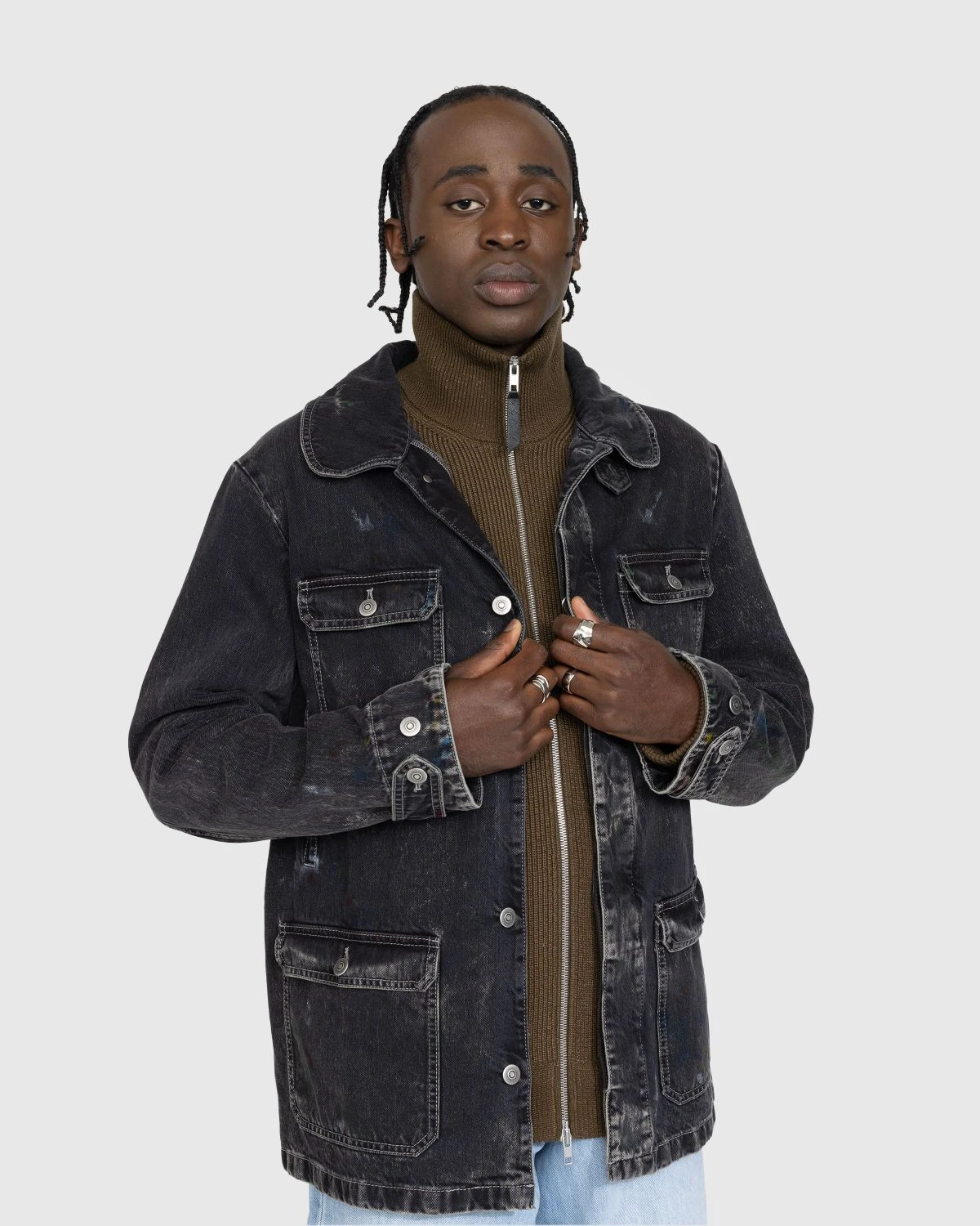 High fashion meets workwear with the Denim Jacket by Maison Margiela. Cut in a slightly oversized fit from premium dark-washed denim, the outerwear style features a round collar and front button closure, with adjustable button cuffs. A series of flap pockets are incorporated onto the front of the silhouette to define the piece, as the fashion house’s signature four stitches moniker then subtly brands the garment on the back.
