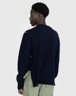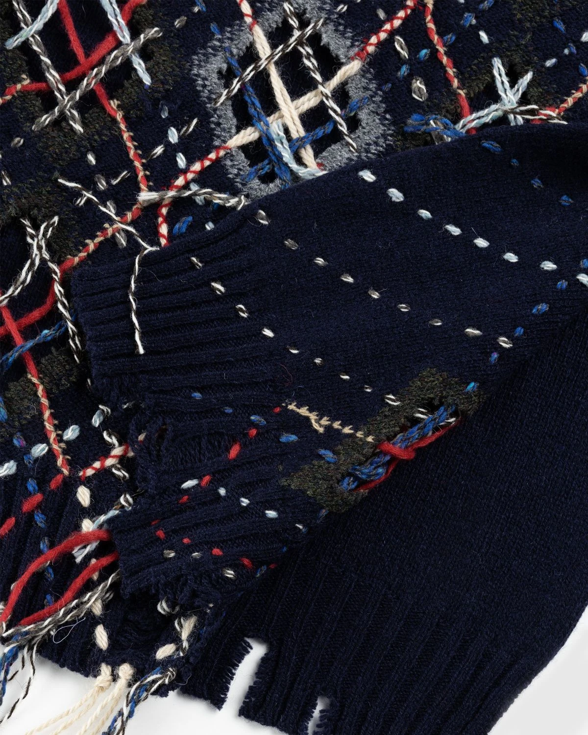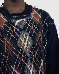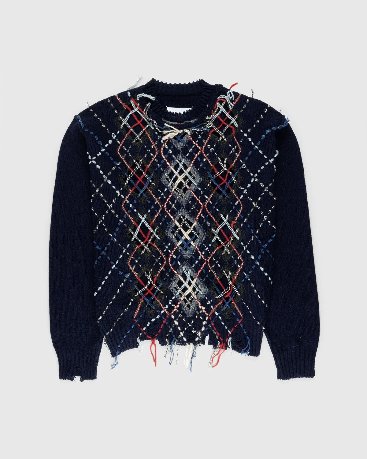This season, Maison Margiela comes through with a distinctive new take on the classic crewneck sweater. The garment is produced in soft wool-alpaca blend fabric and features argyle intarsia knit with contrasting stitches. Ribbed trims are implemented at the crew neck, cuffs, and hem to complete the design.
